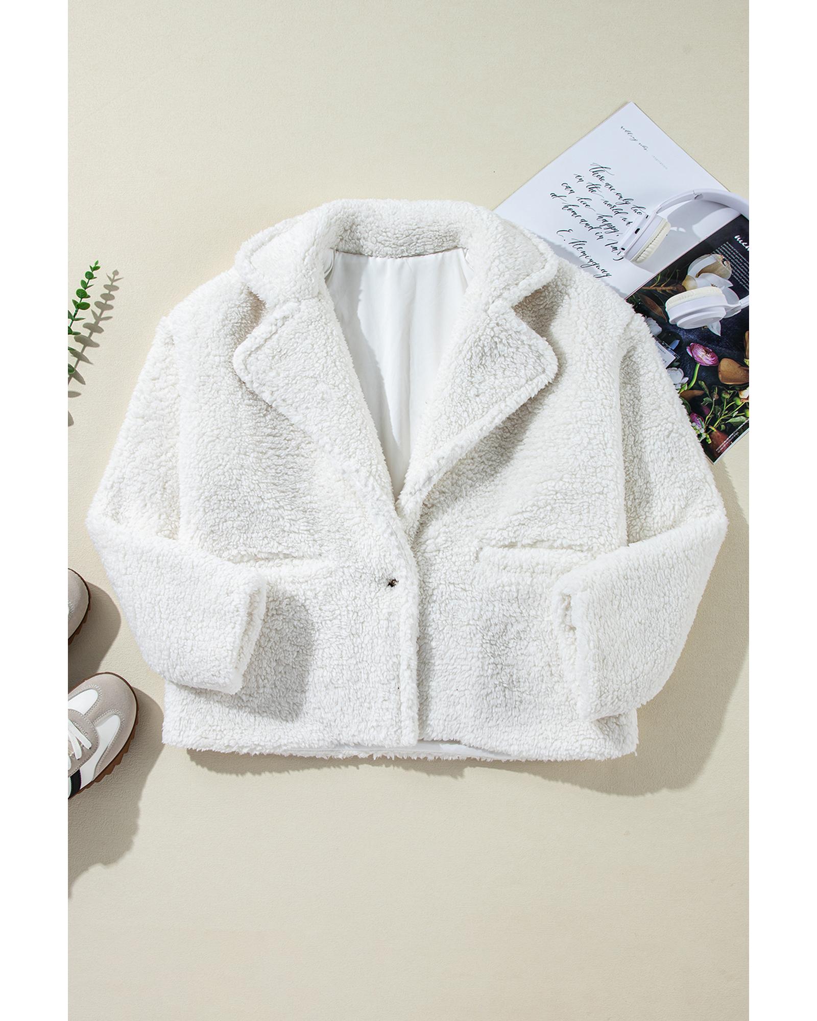 Beige Faux Fur Button Pocketed Lapel Collar Jacket – M