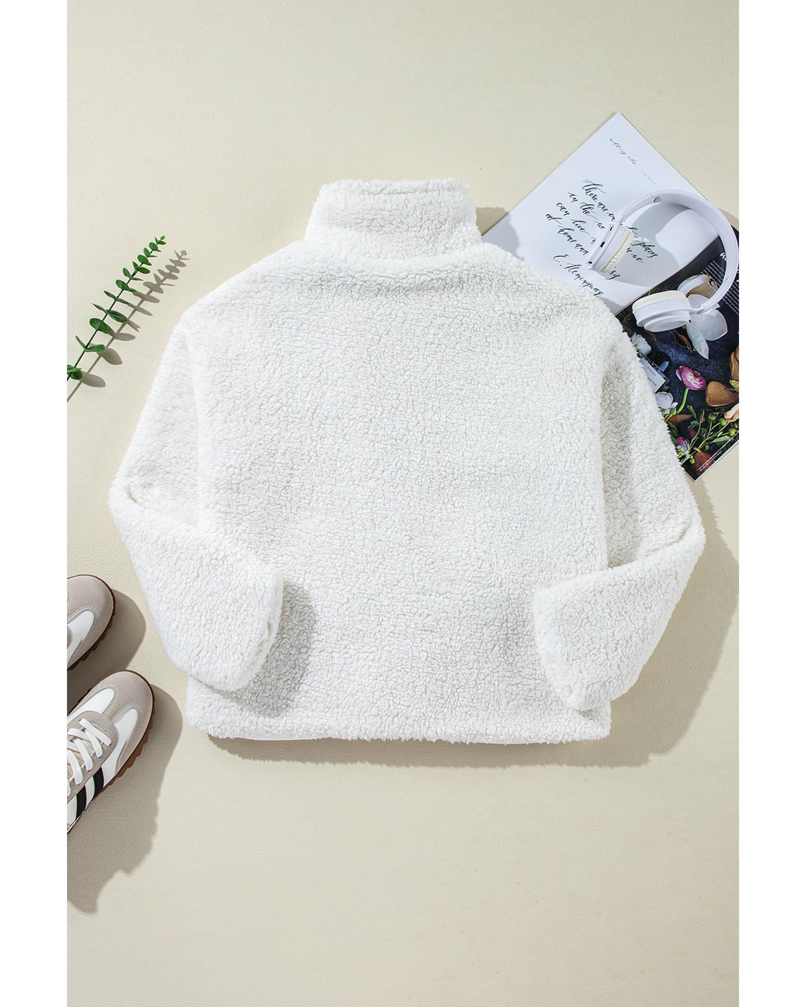 Beige Faux Fur Button Pocketed Lapel Collar Jacket – S