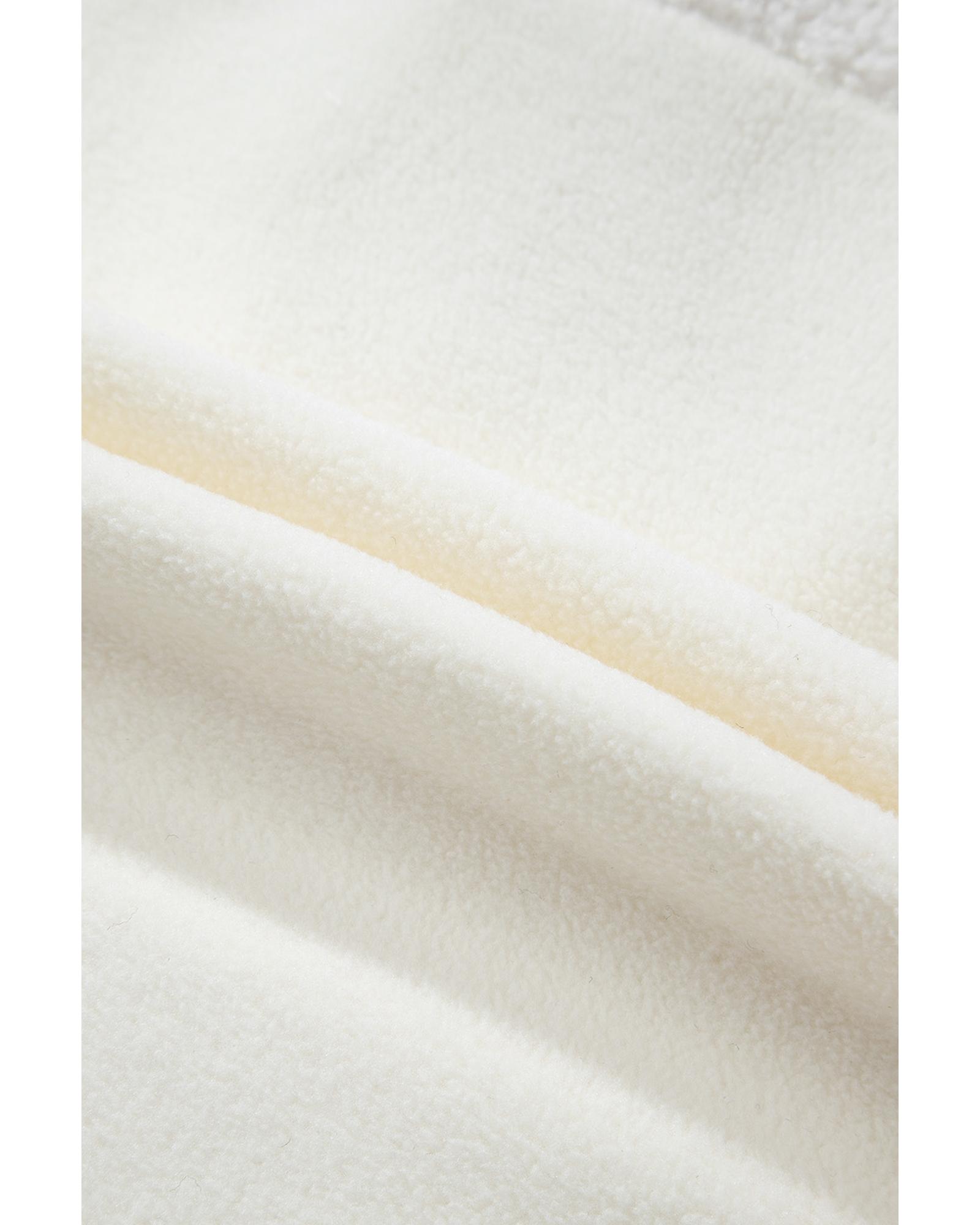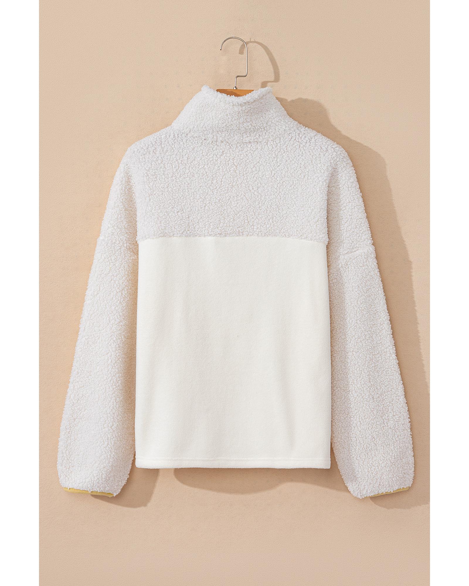 Beige Fleece Colorblock Trim Buttons Collar Sweatshirt with Pocket – XL