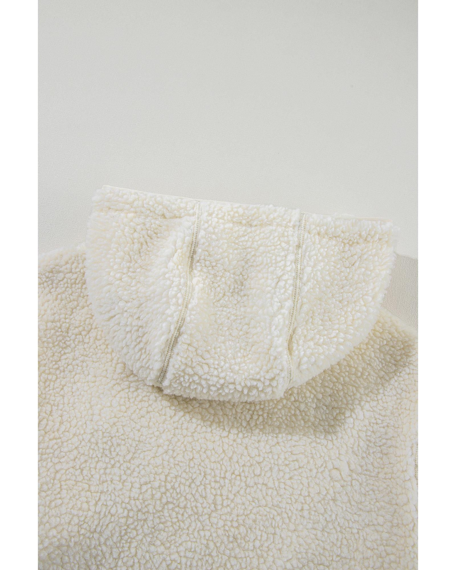 Beige Fleece Zip Up Drawstring Hooded Pocketed Jacket – L
