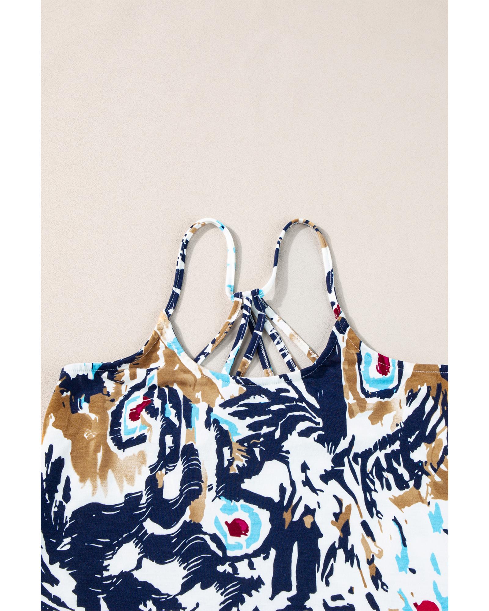 - Beige Floral Spaghetti Straps Strappy Back Tank Top