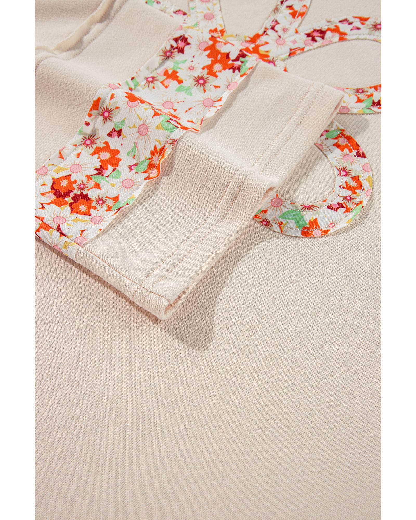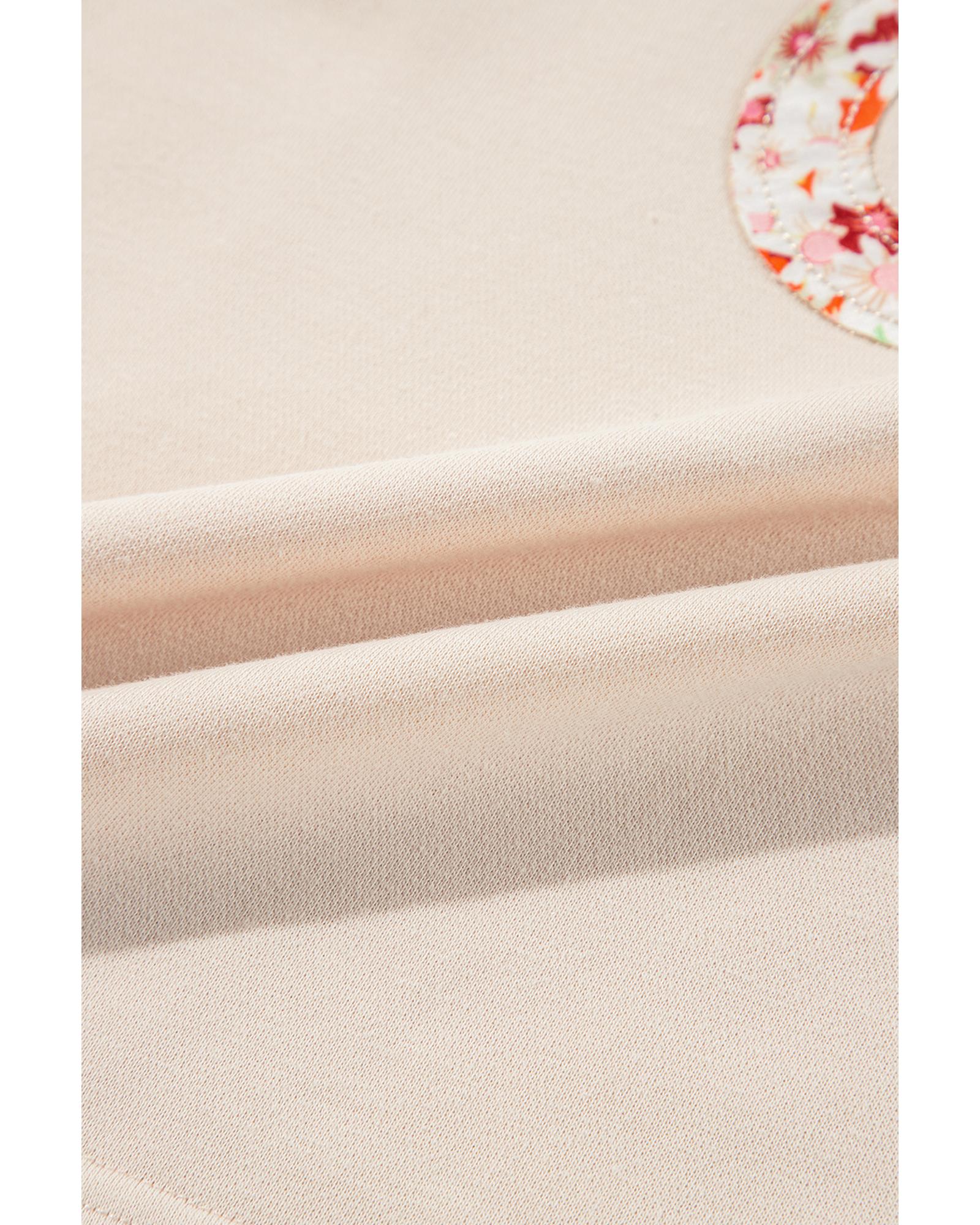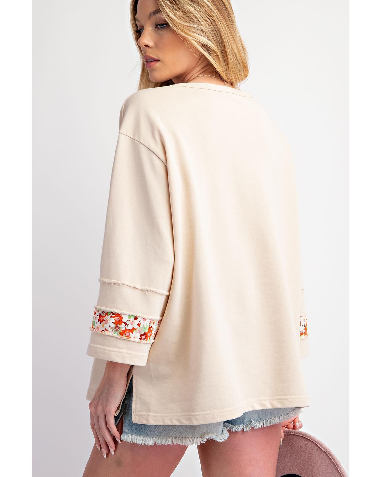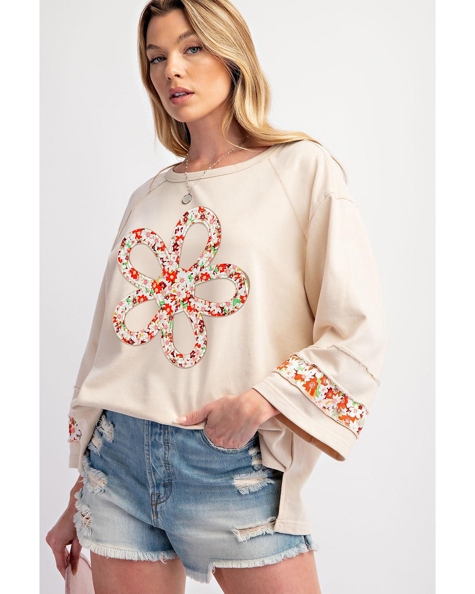 Beige Flower Patch Graphic Exposed Seam Wide Sleeve Top – M