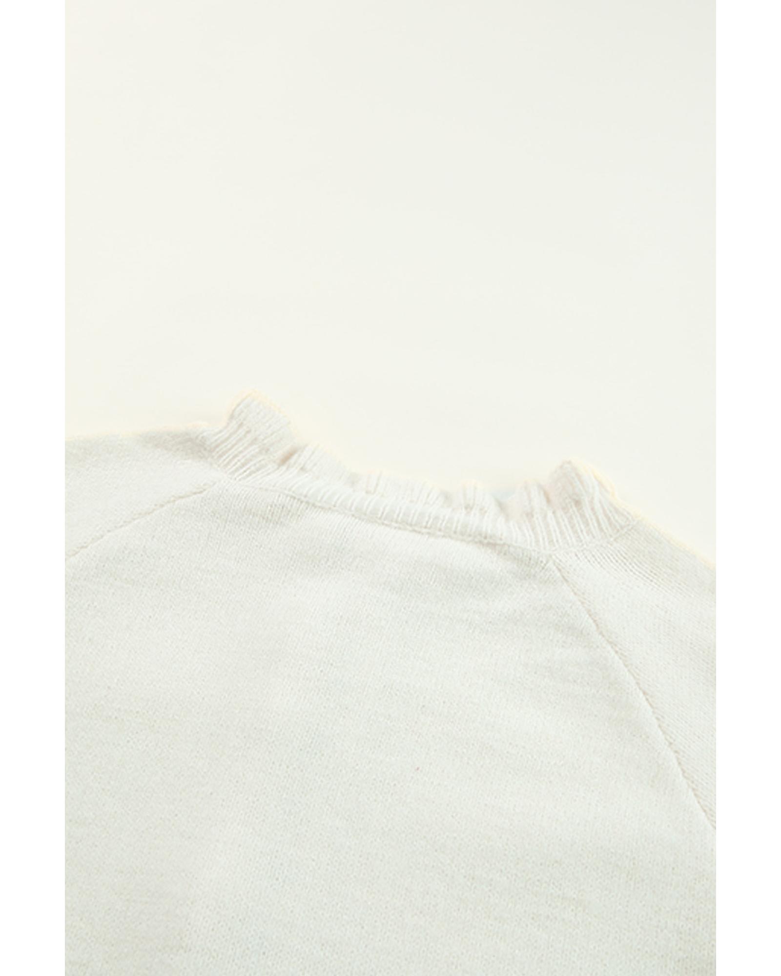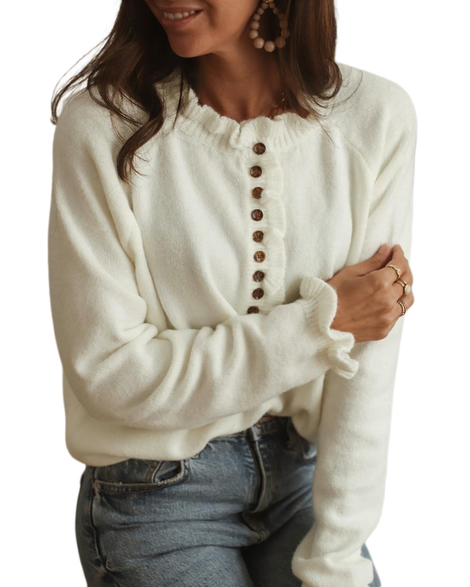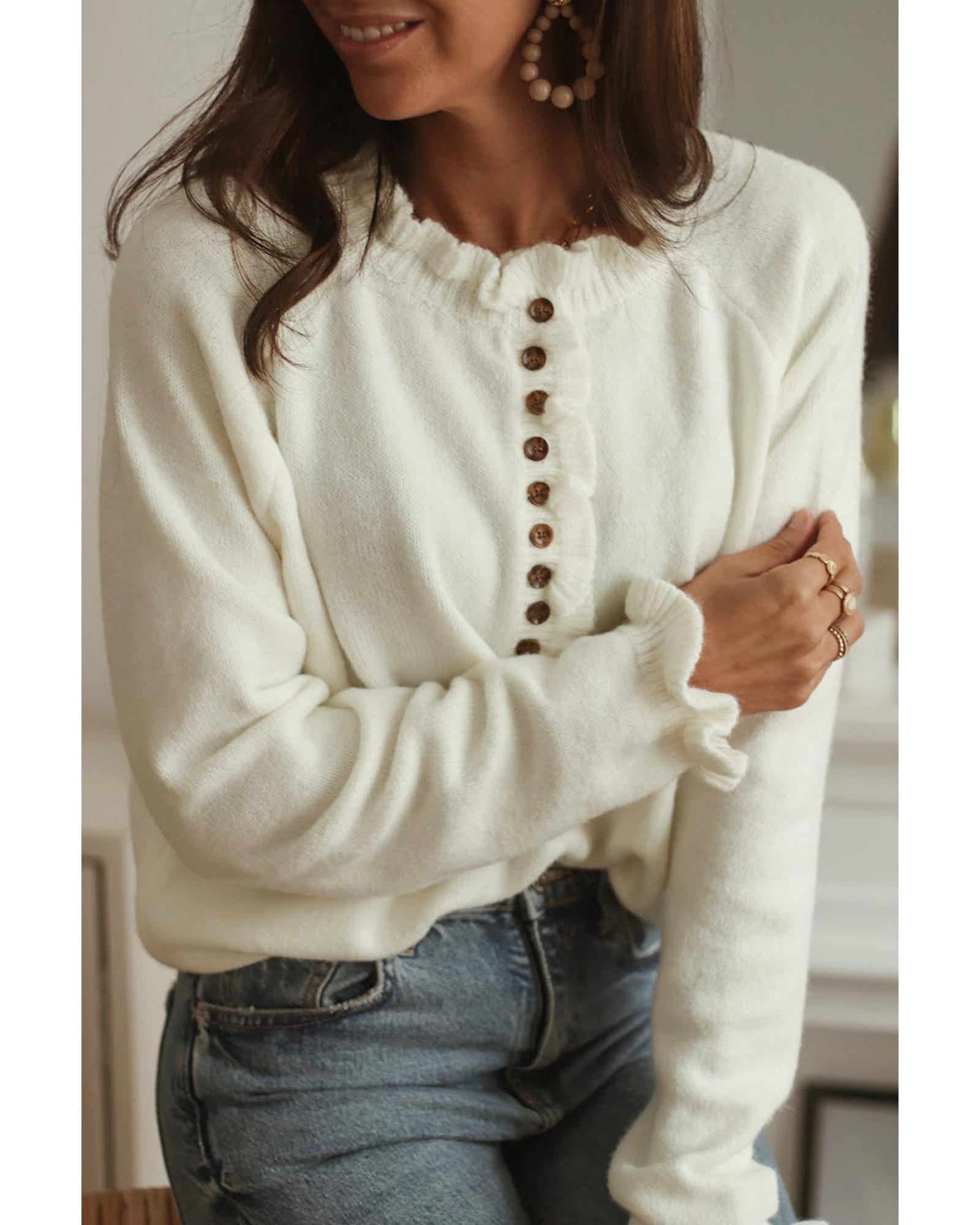 Beige Frill Trim Buttoned Knit Pullover Sweater – 2XL