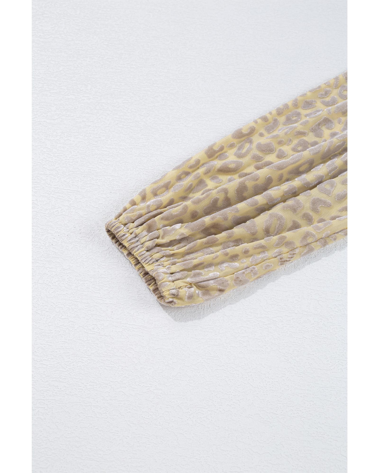 Beige Leopard Velvet Burnout Off Shoulder Long Sleeve Blouse – S