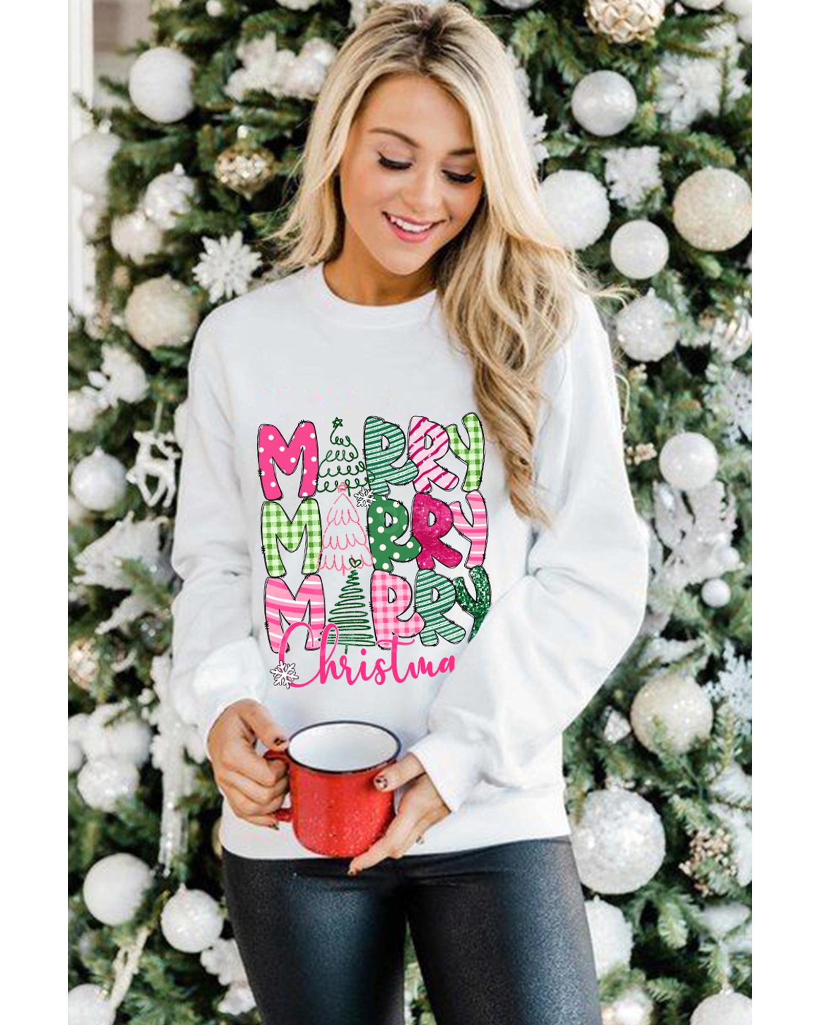 - Beige MERRY Christmas Printed Drop Shoulder Pullover Sweatshirt
