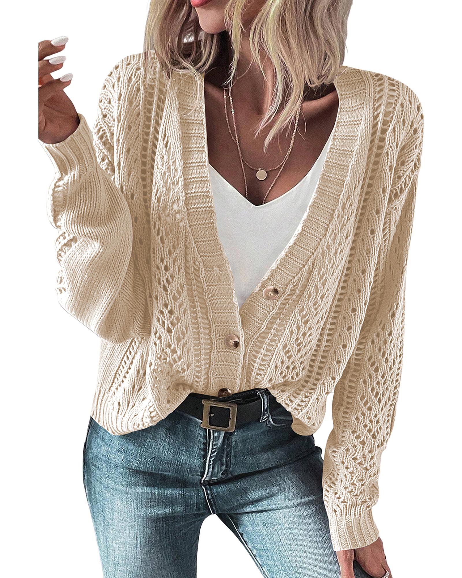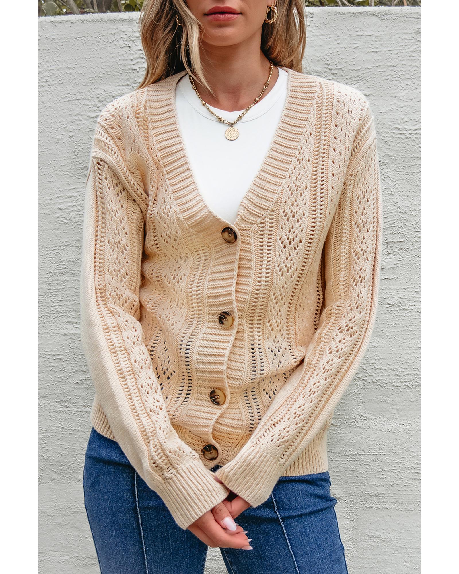Beige Open Knit Drop Shoulder Sweater Cardigan – 2XL