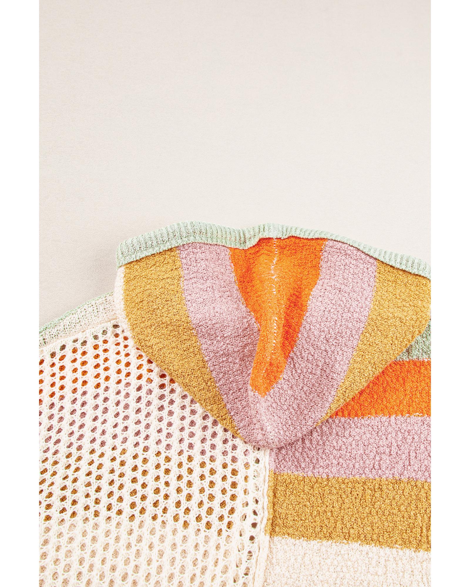 Beige Oversized Colorblock V Neck Hooded Sweater – L