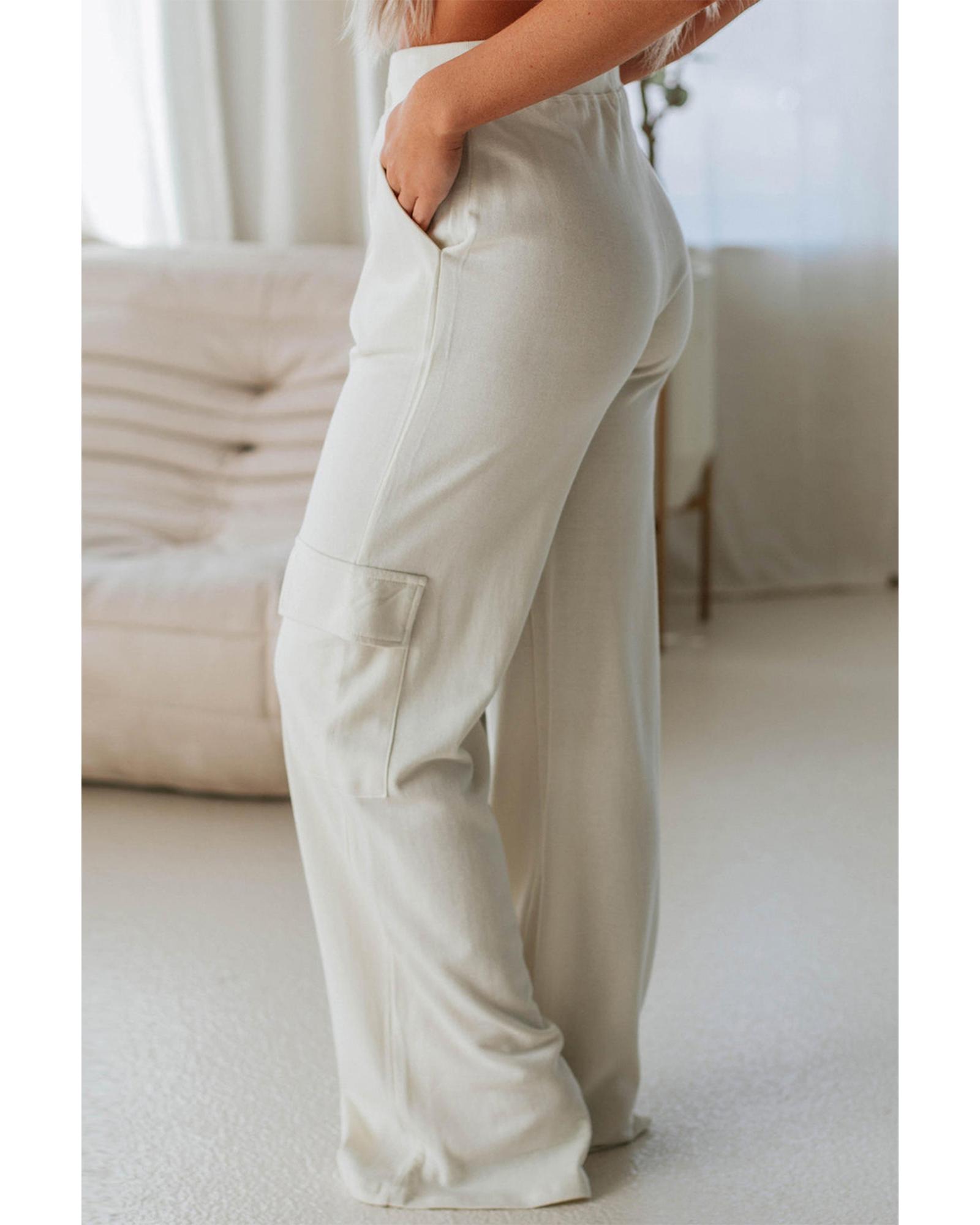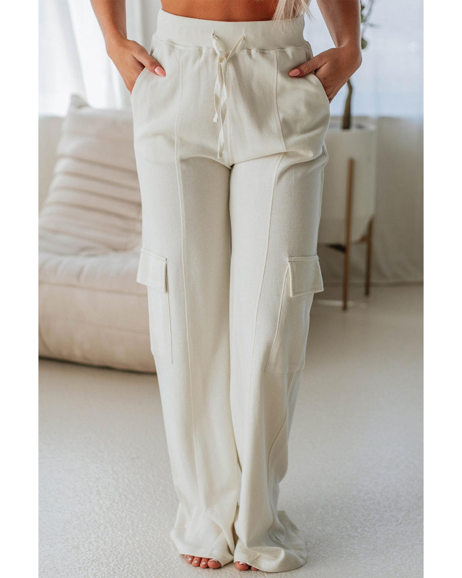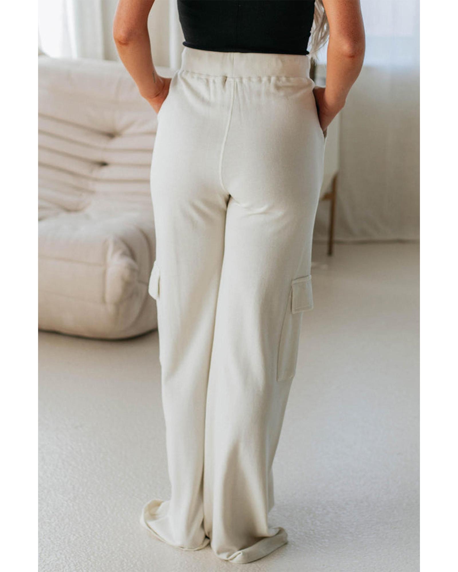 Beige Plain Cargo Pockets High Waist Casual Sweatpants – XL