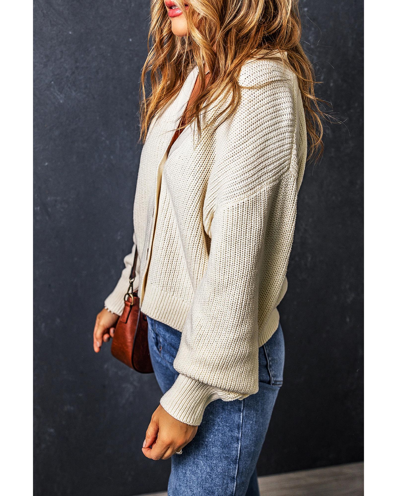 Beige Plain Knitted Buttoned V Neck Cardigan – L