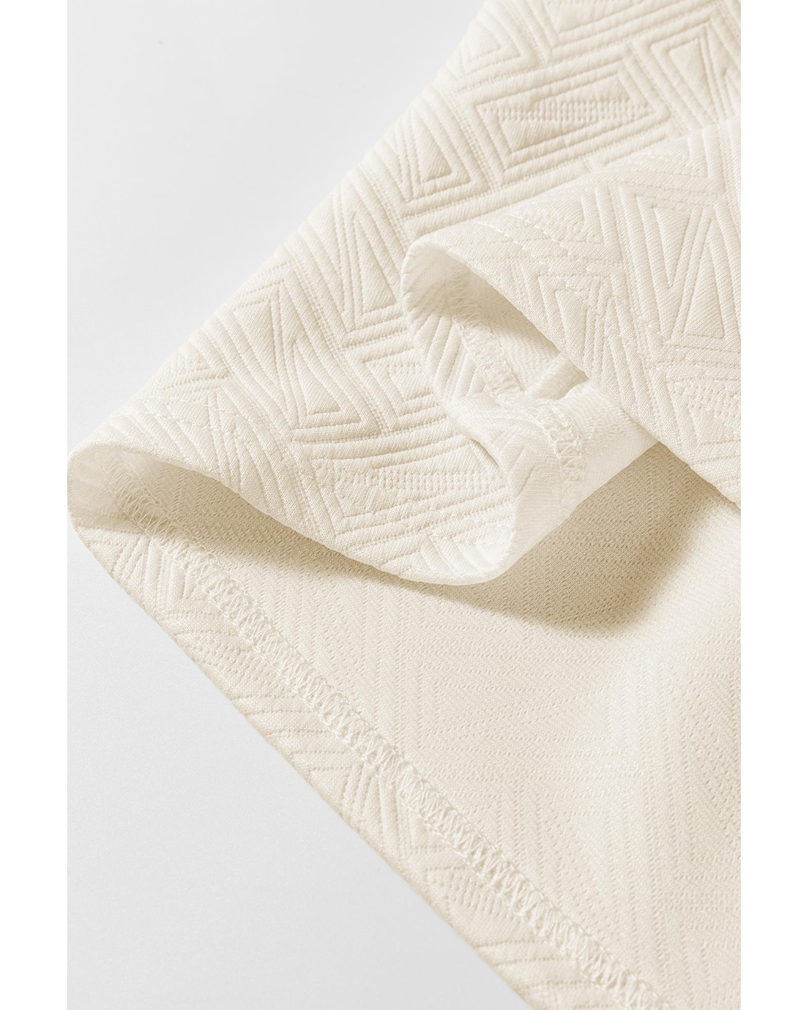 Beige Preppy Striped Trim Textured Quarter Zipper Colorblock Short Sleeve Top – XL