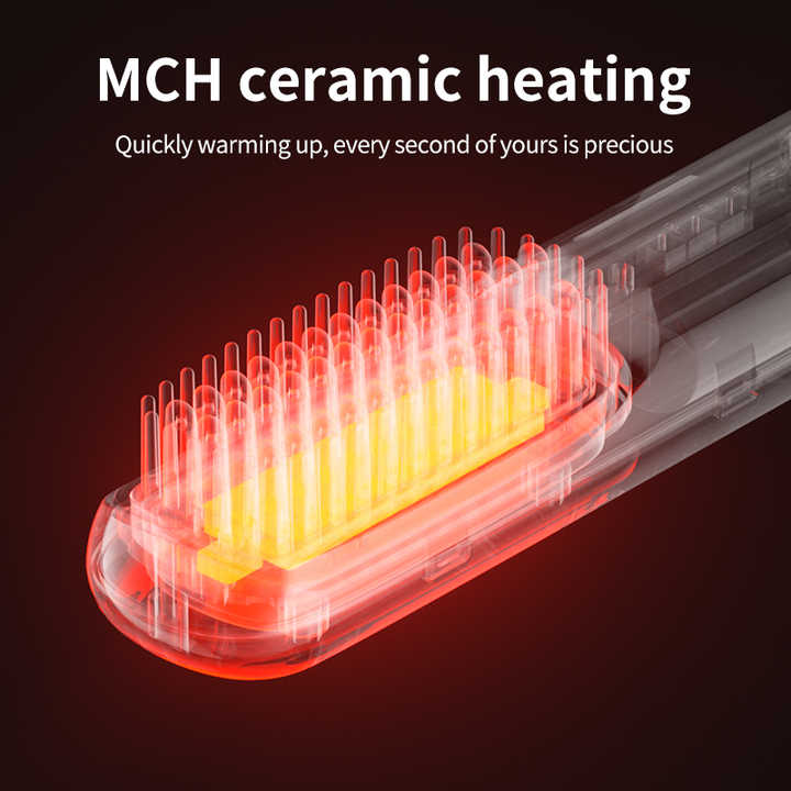 Wireless Hair Straightening Brush – Off-white Button Edition, 35W Power