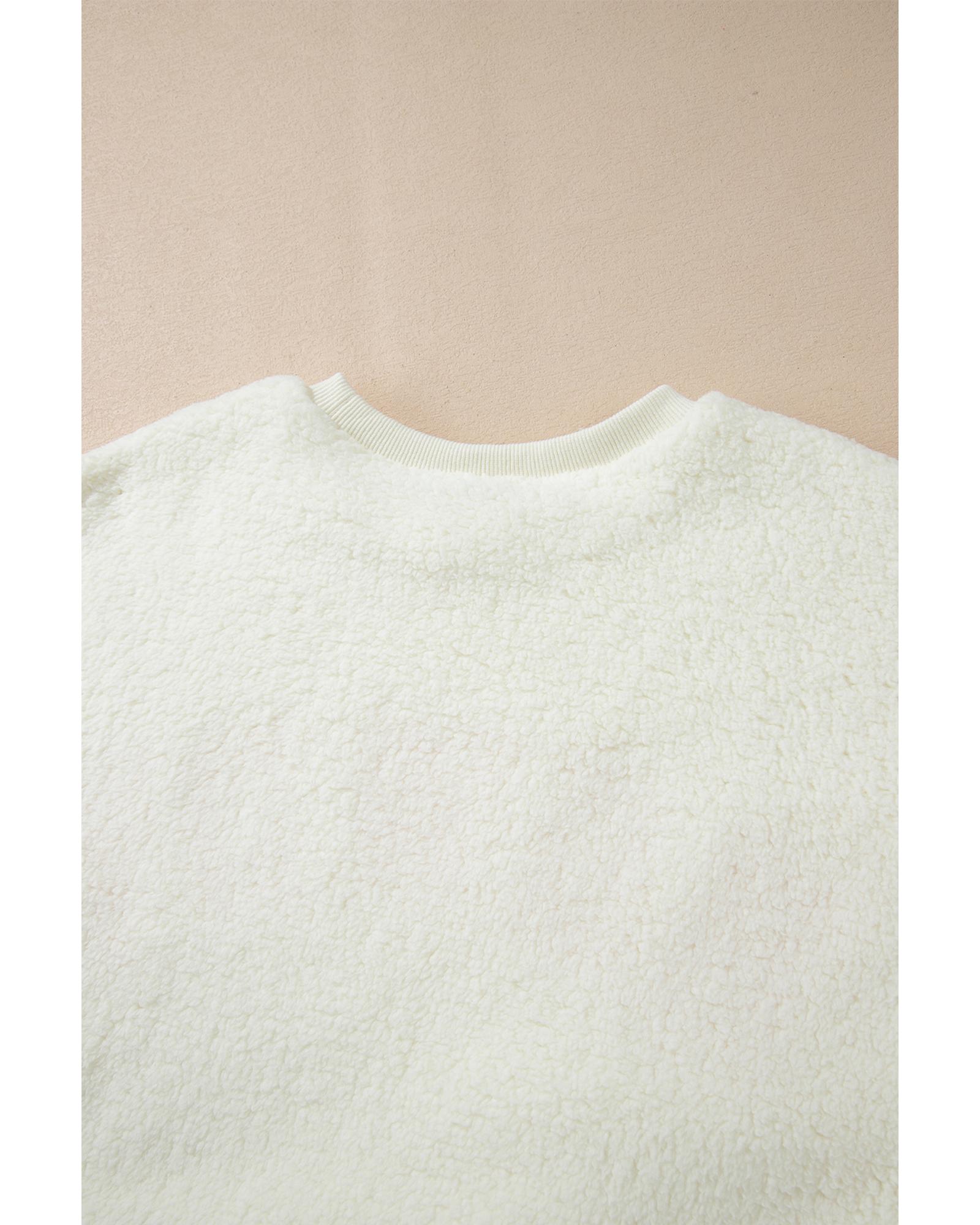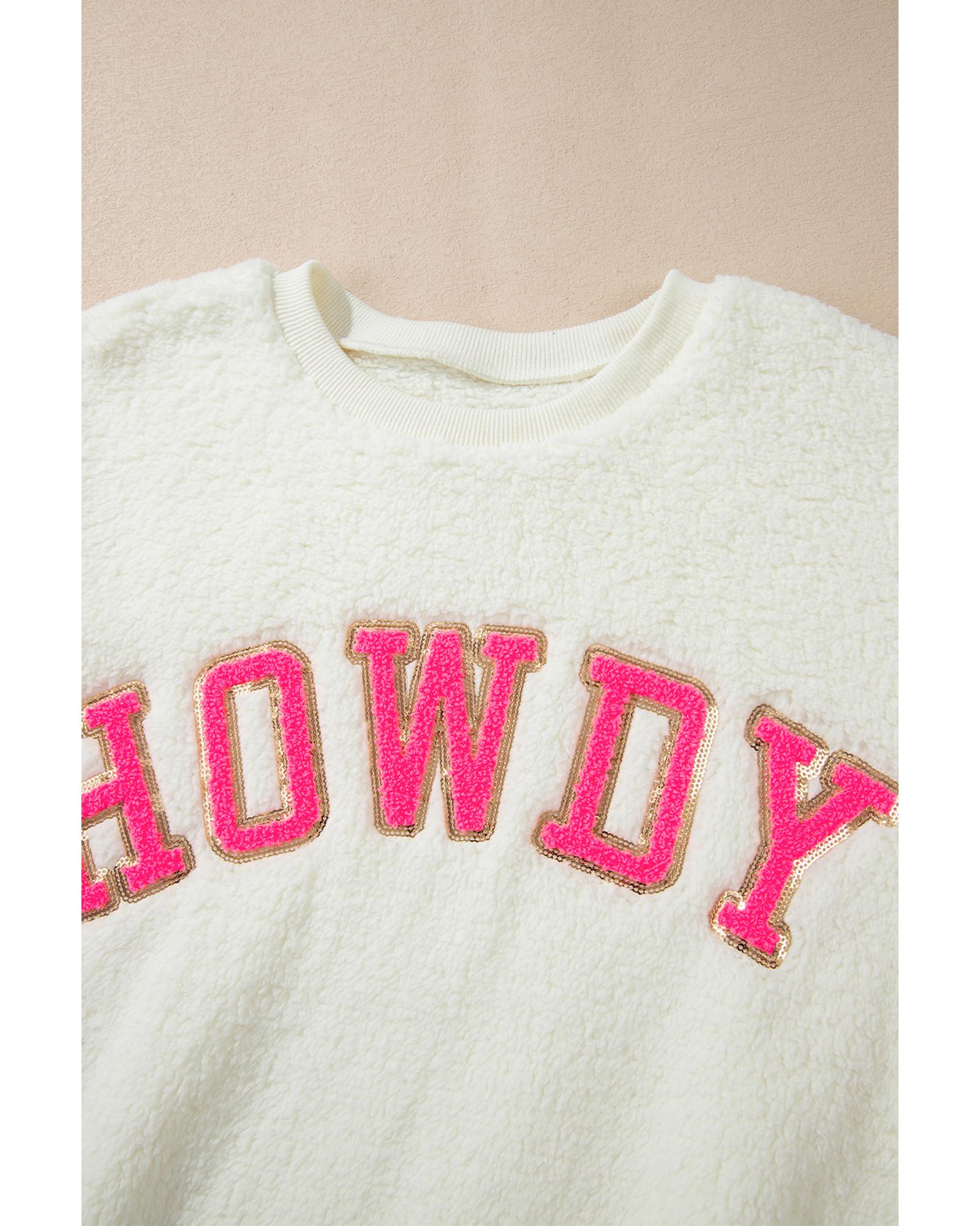- Beige Sherpa HOWDY Patched Pullover Sweatshirt