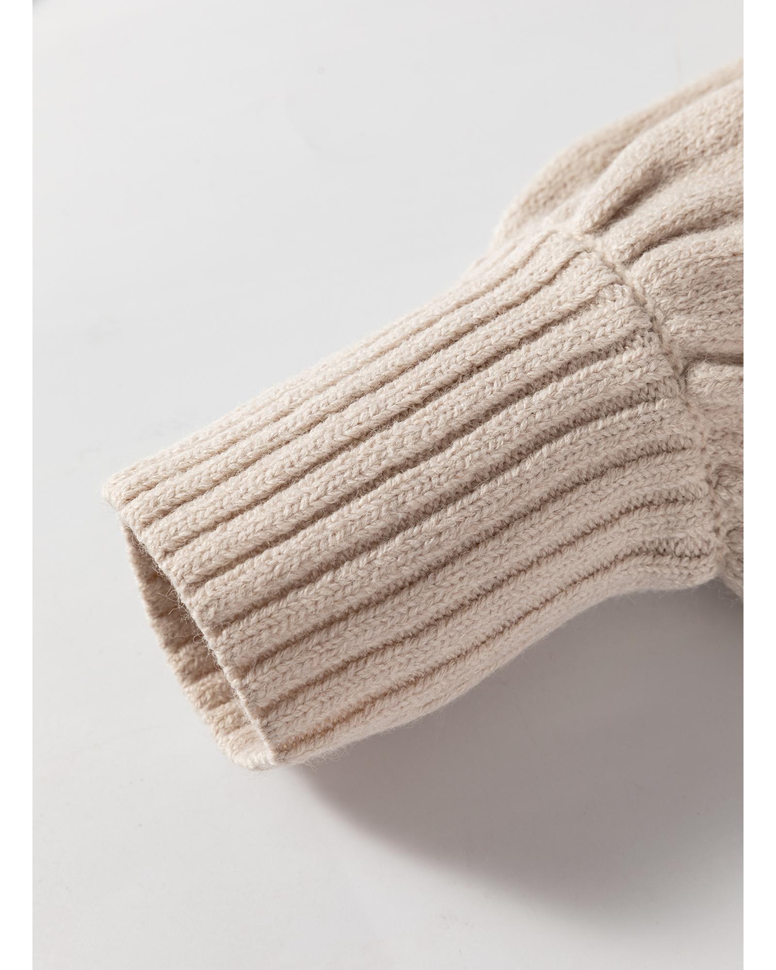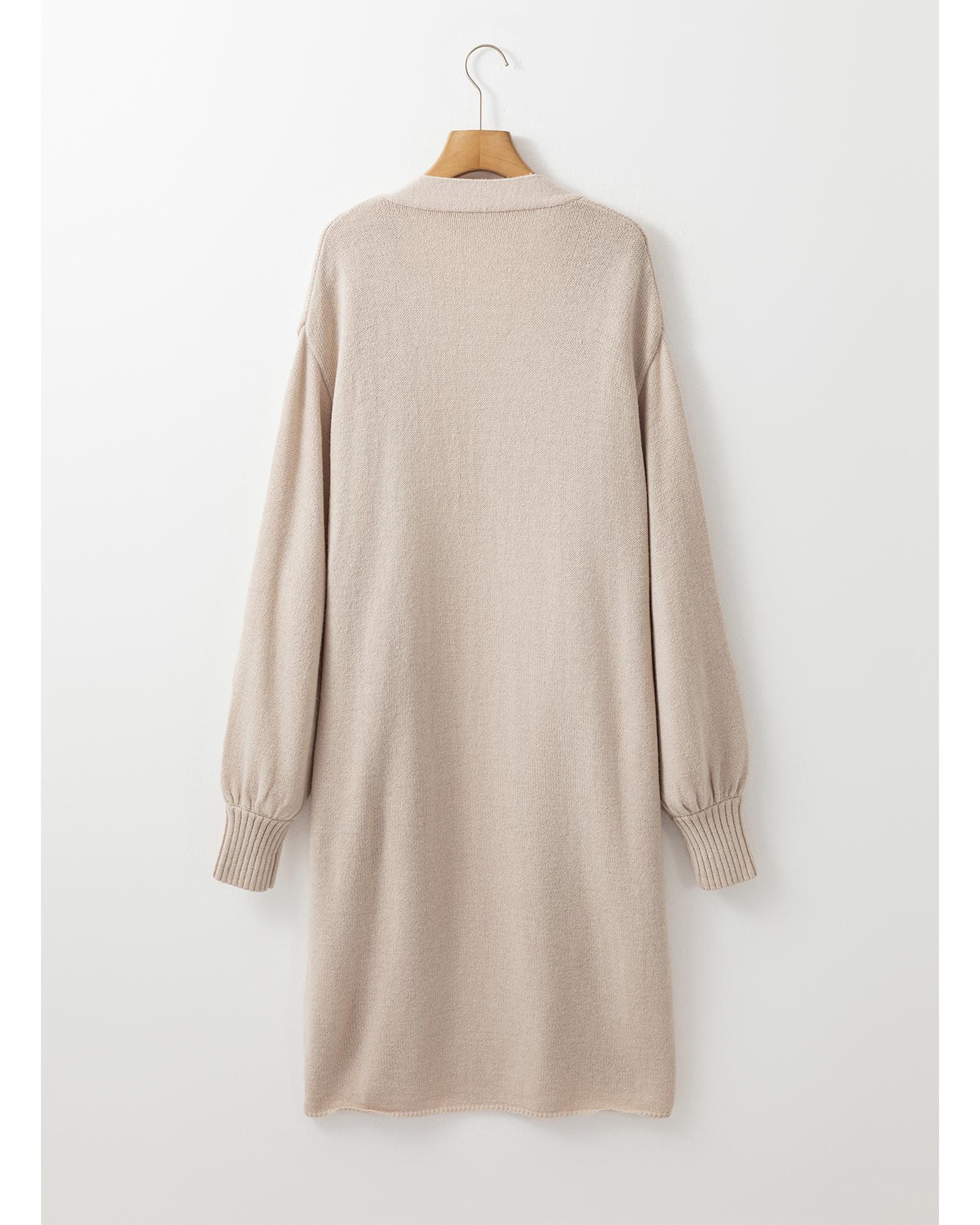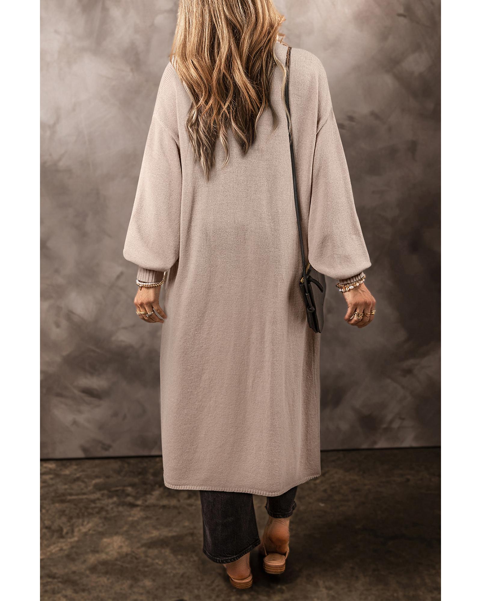- Beige Side Pockets Open Front Long Knitted Cardigan