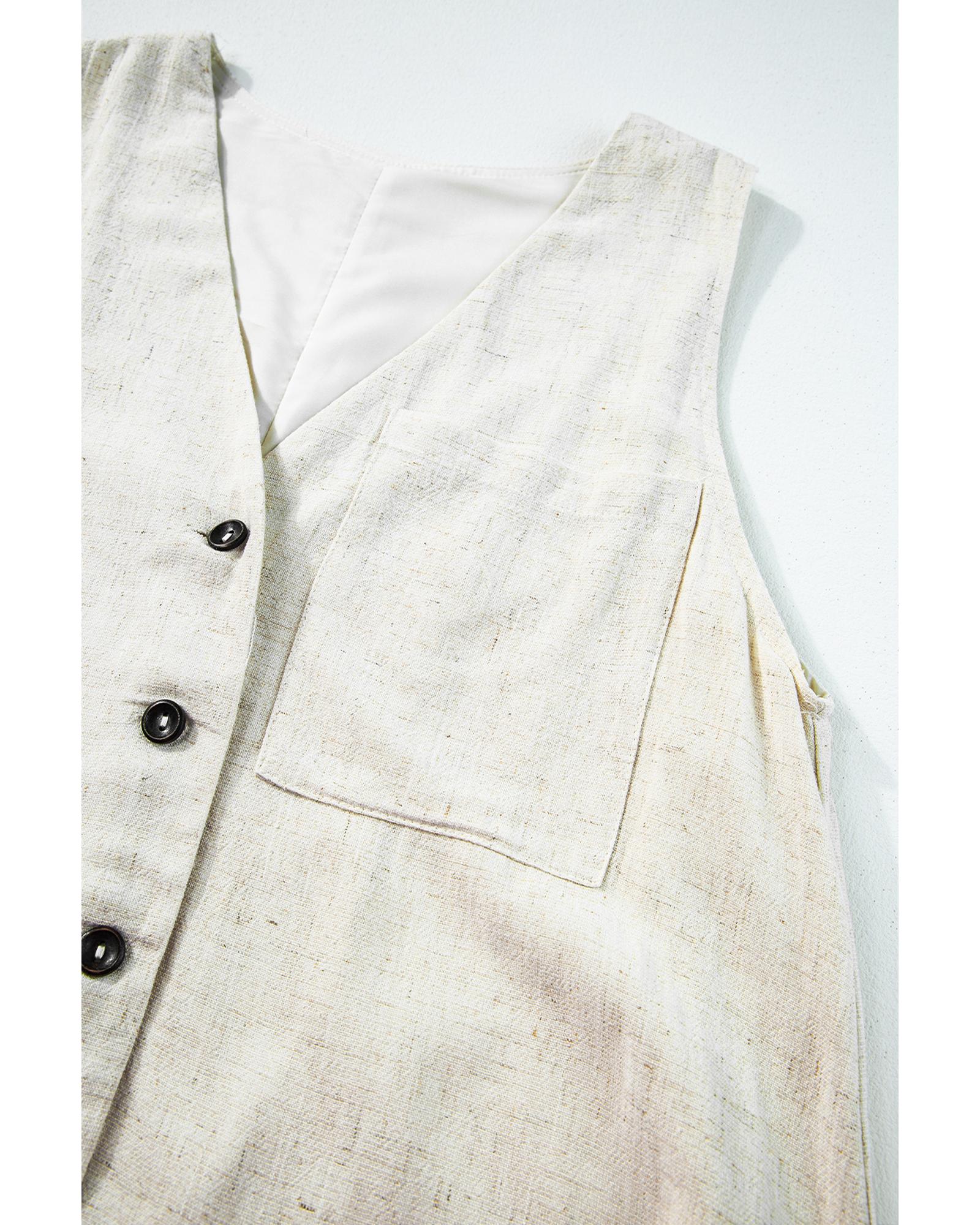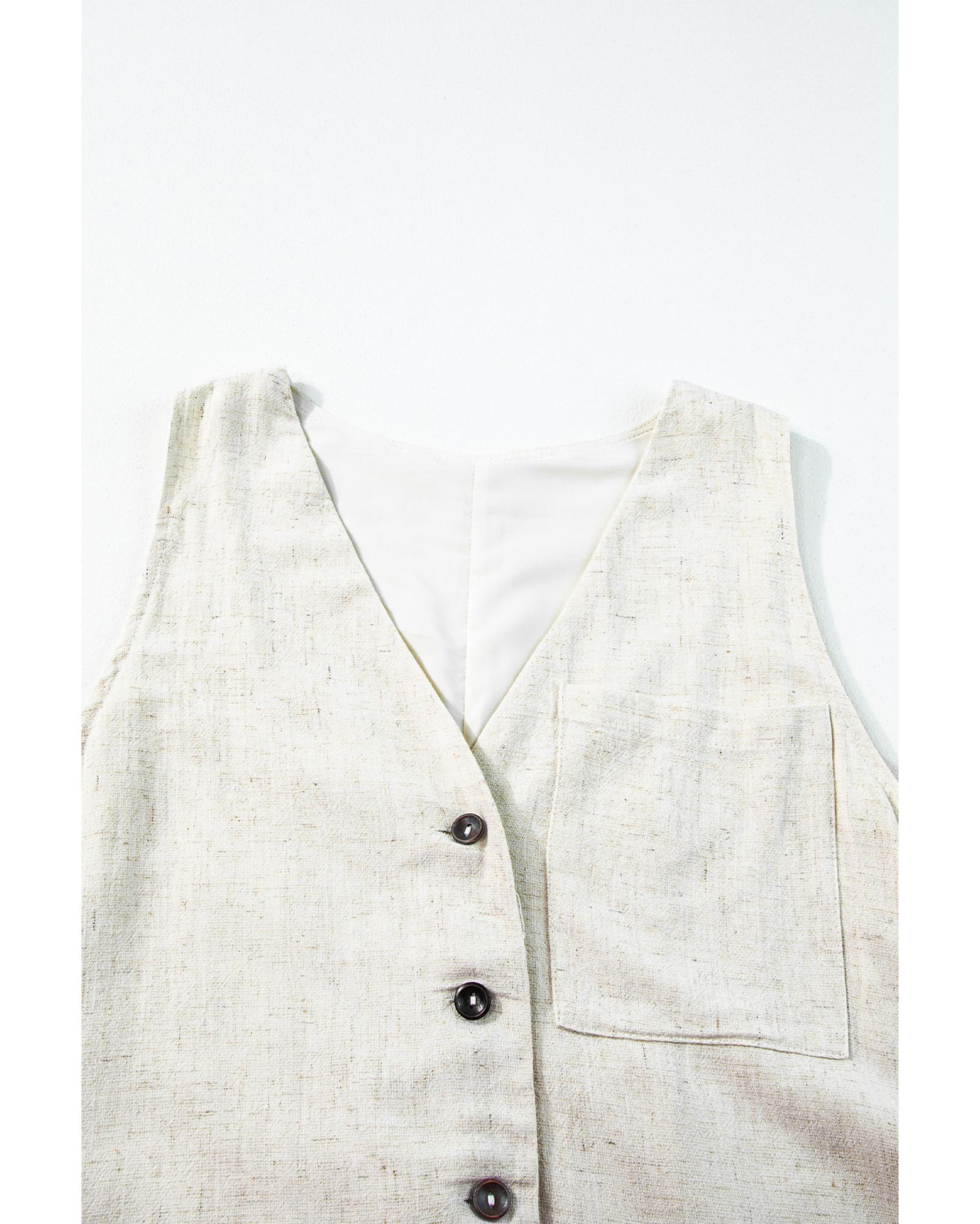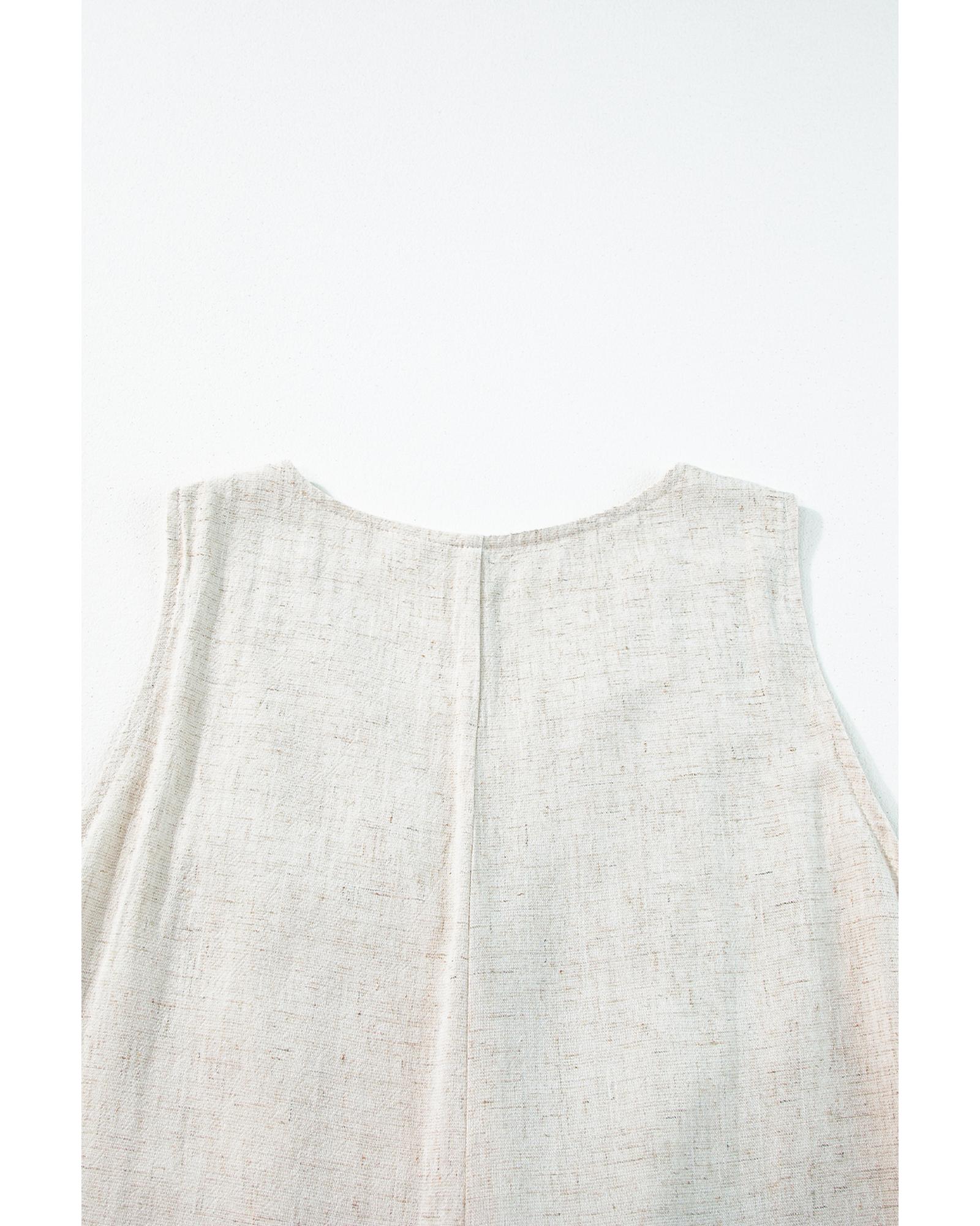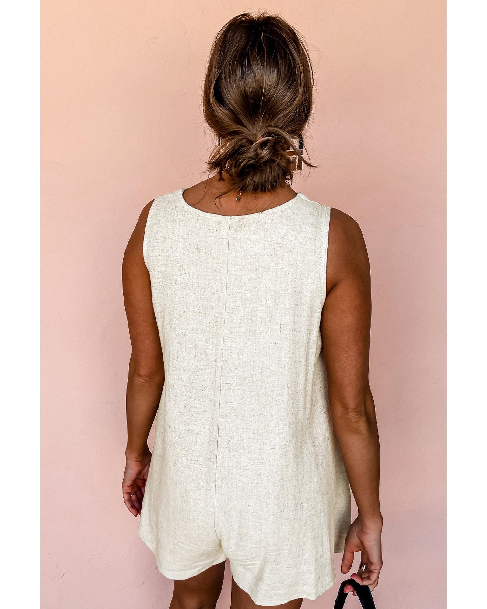 Beige Sleeveless V Neck Buttoned Front Chest Pocket Romper – L