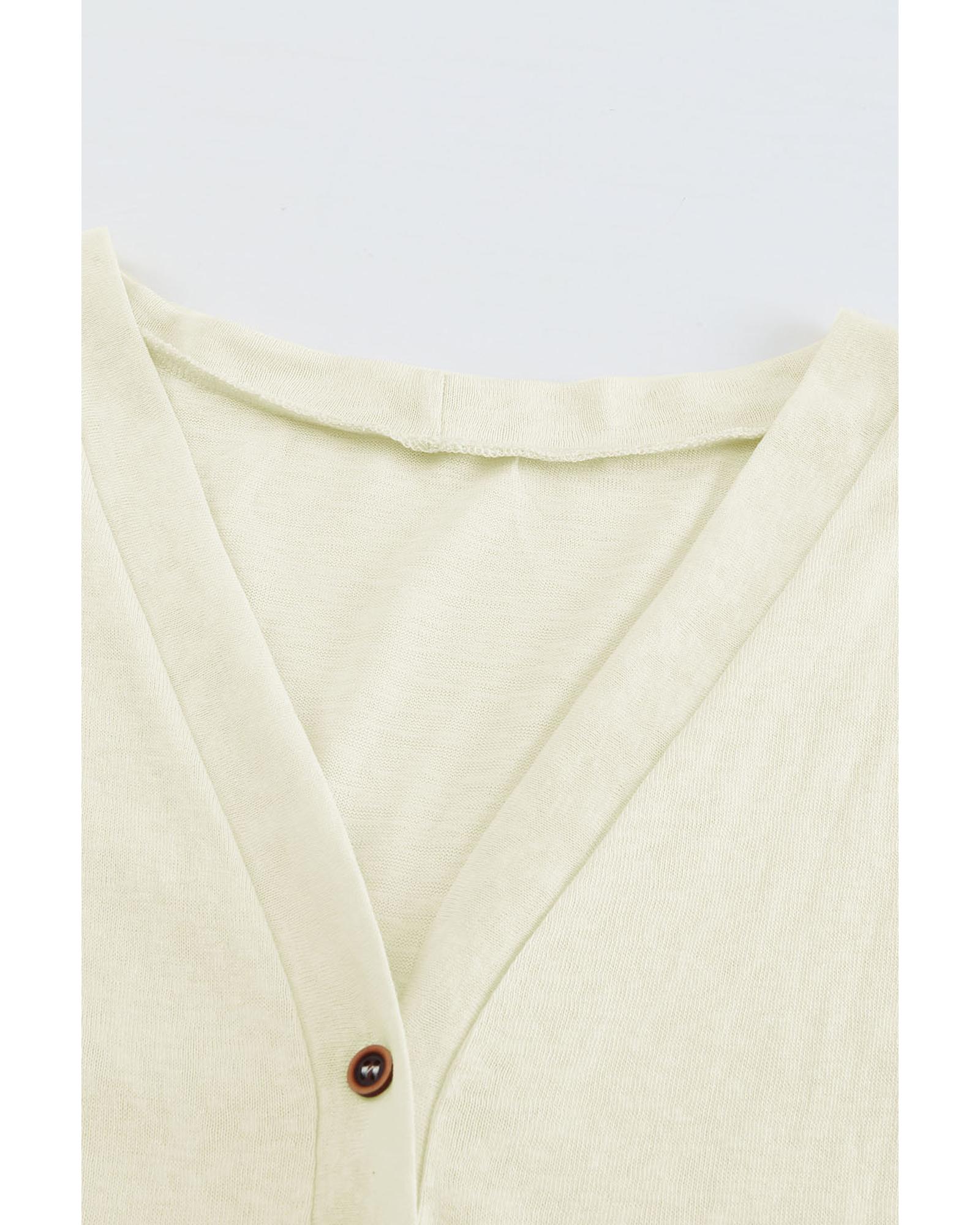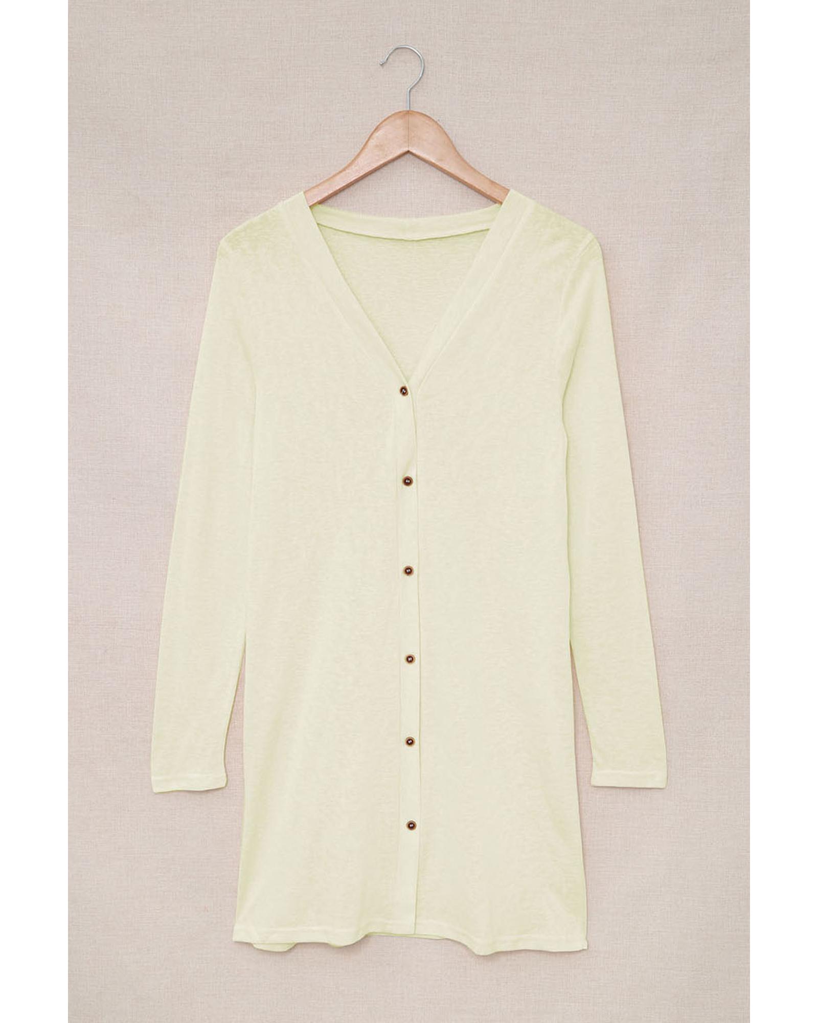 Beige Solid Color Open-Front Buttons Cardigan – S