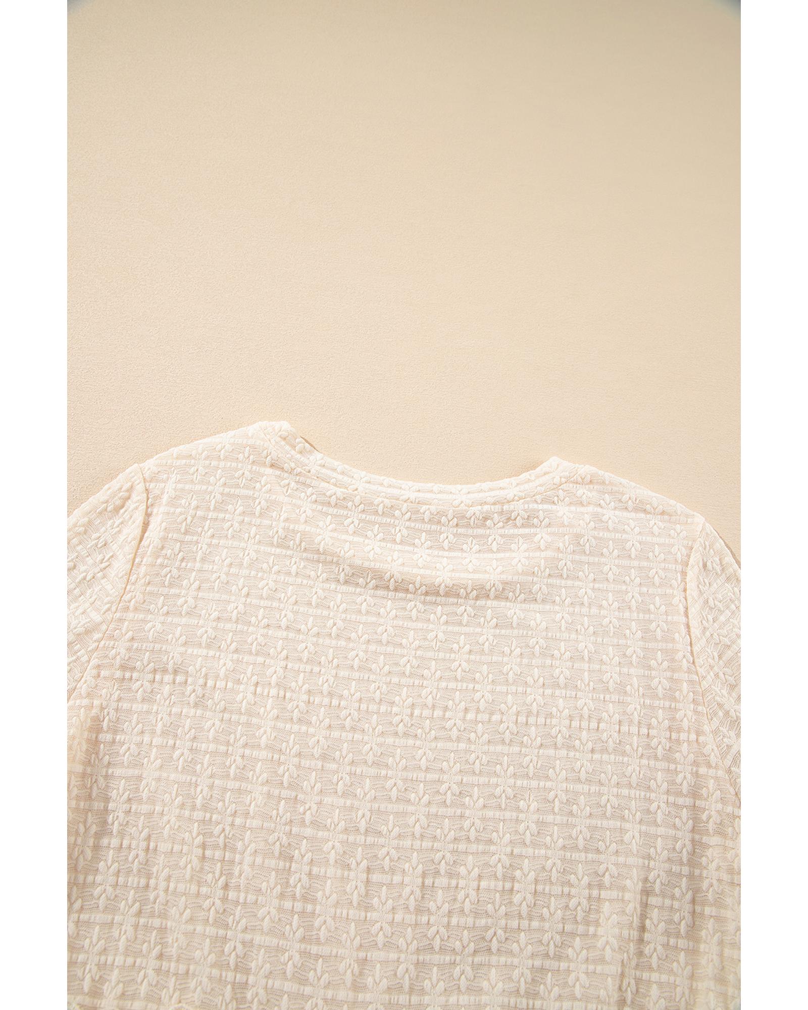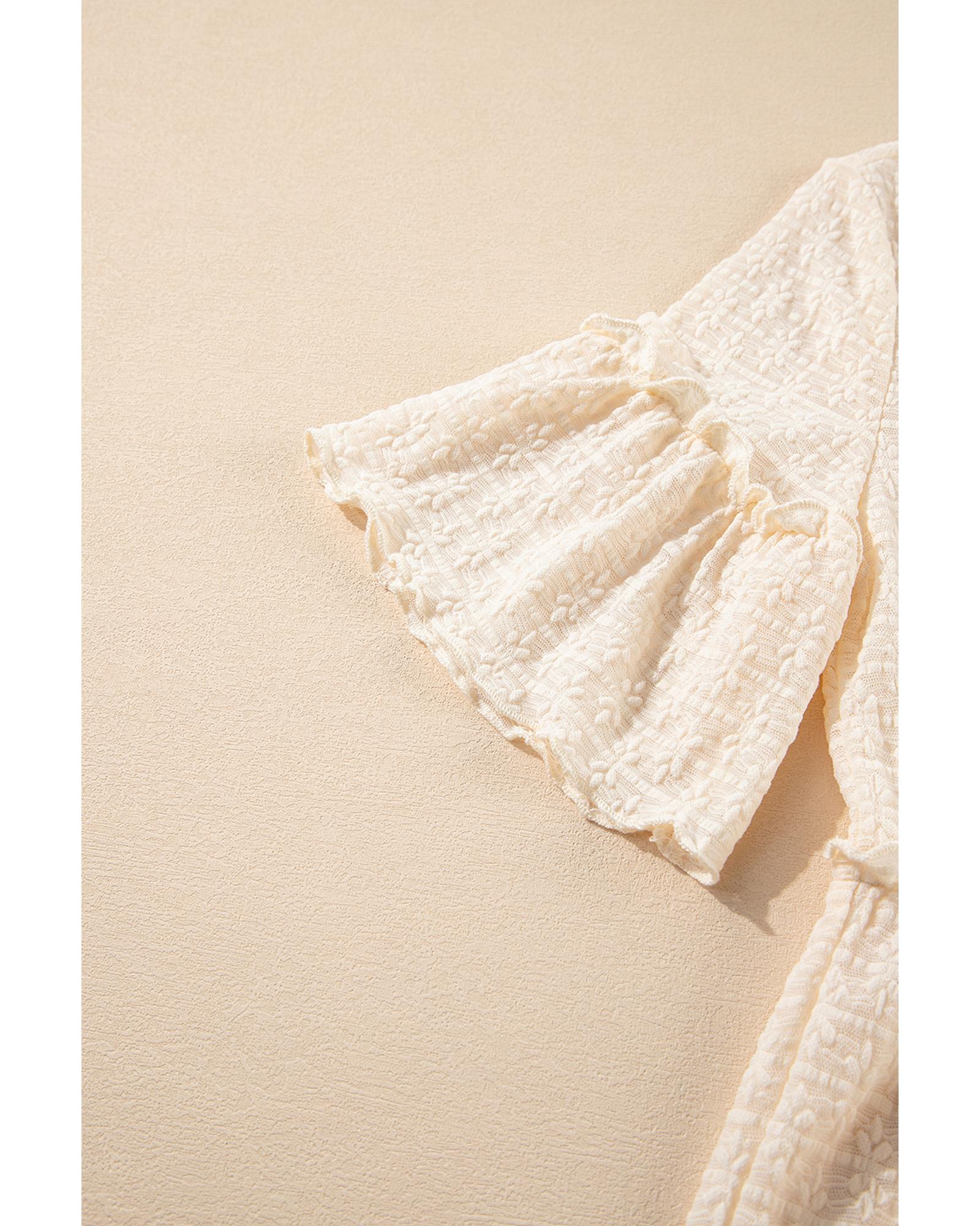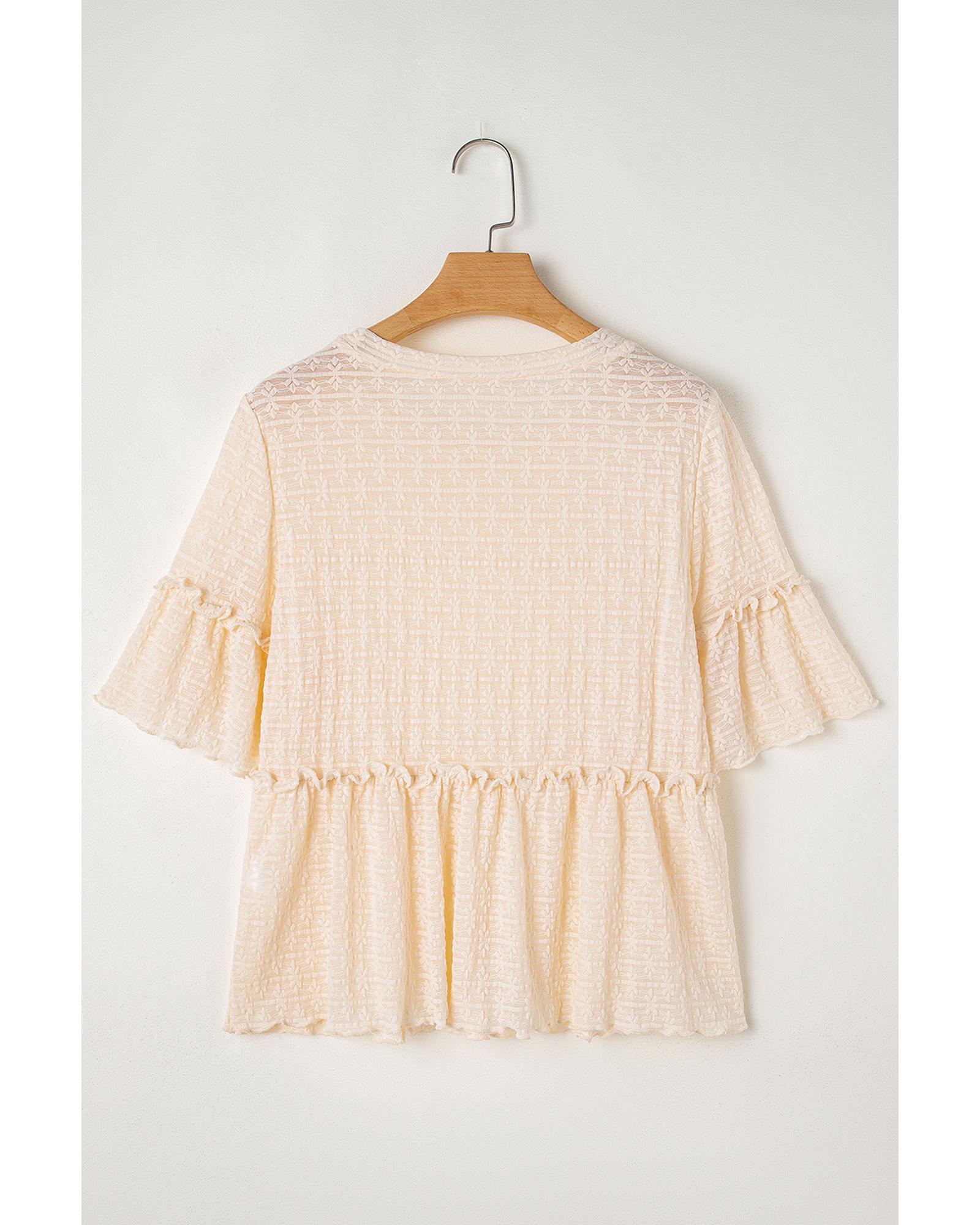 Beige Solid Color Textured Ruffled Short Sleeve Blouse – XL