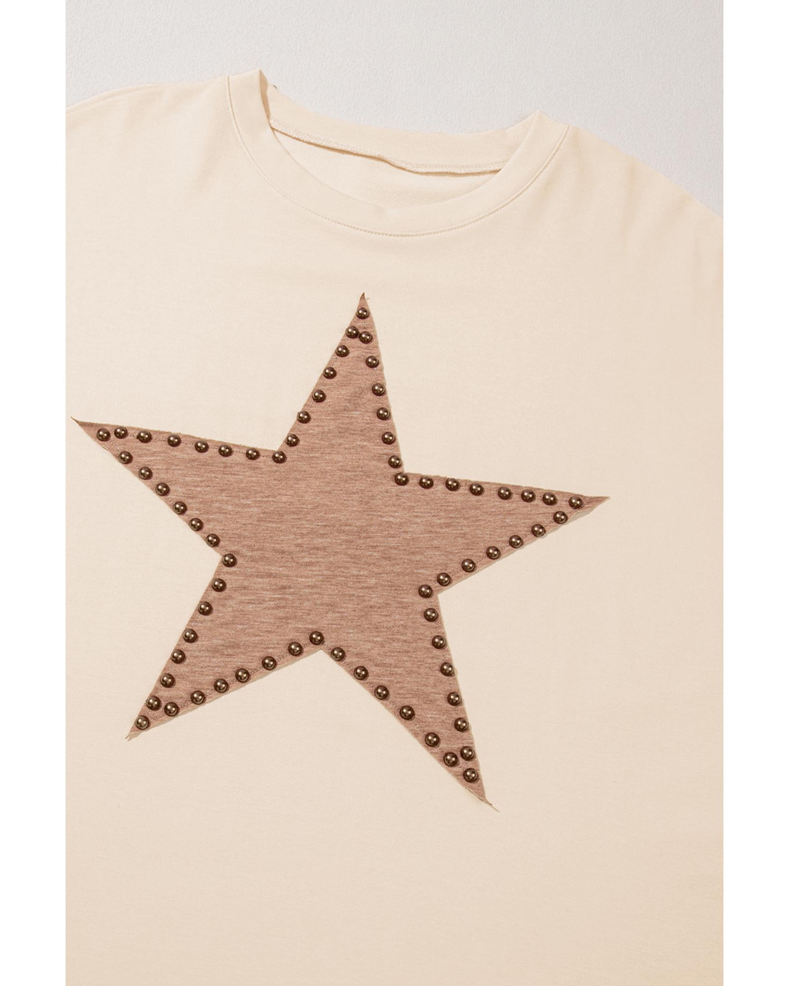 Beige Star Shape Studded Crew Neck Plus Size T Shirt – 4X