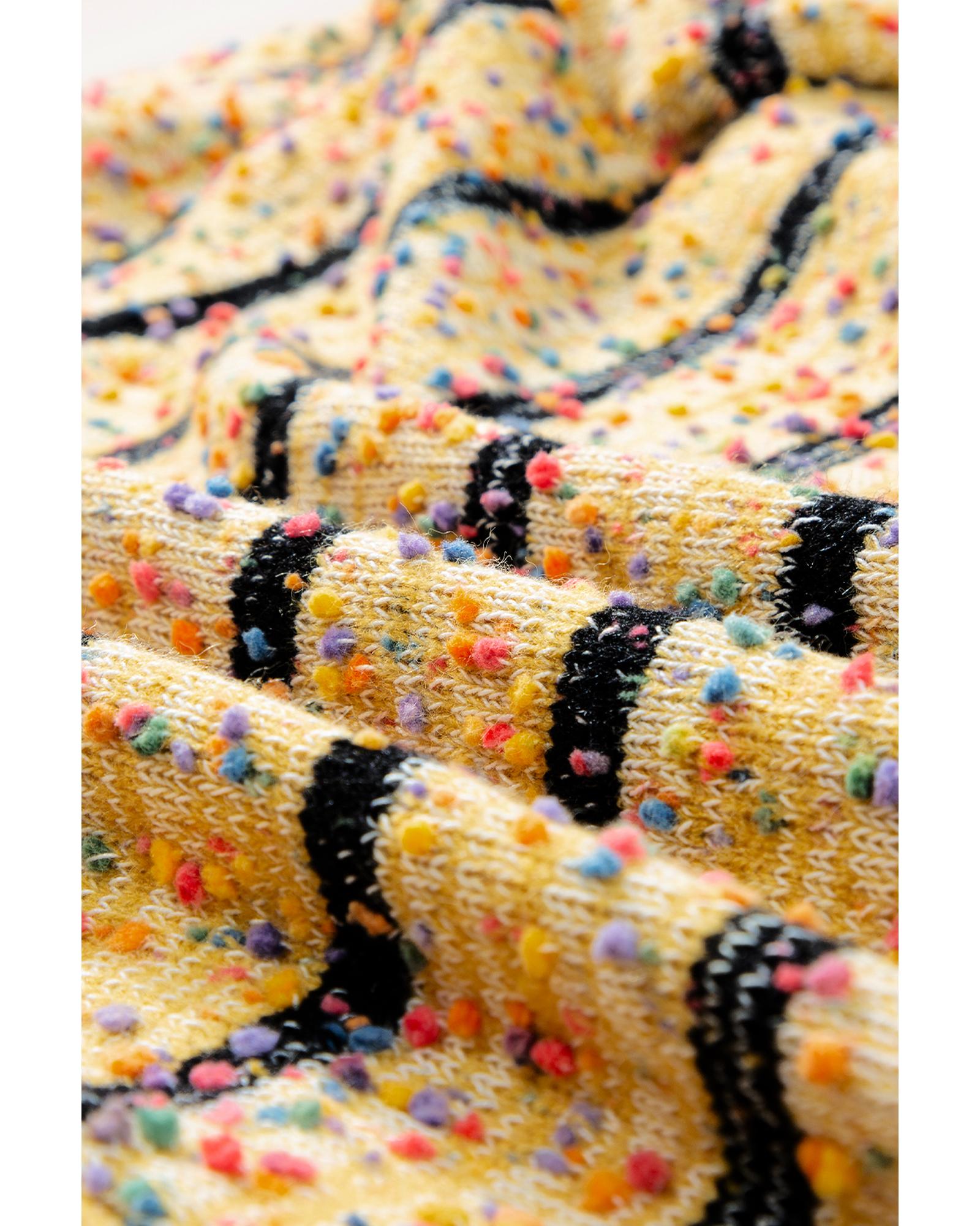 Beige Striped Pom Pom Knit Open Front Long Cardigan – L
