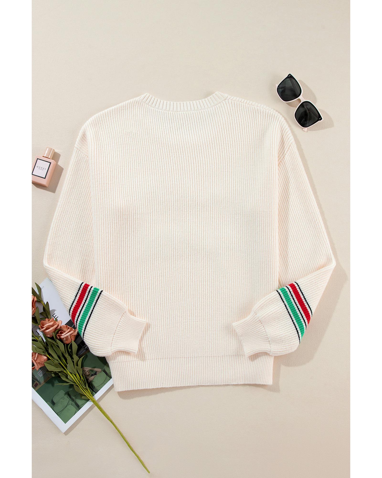 Beige Tinsel Holly Jolly Graphic Classic Sweater – M