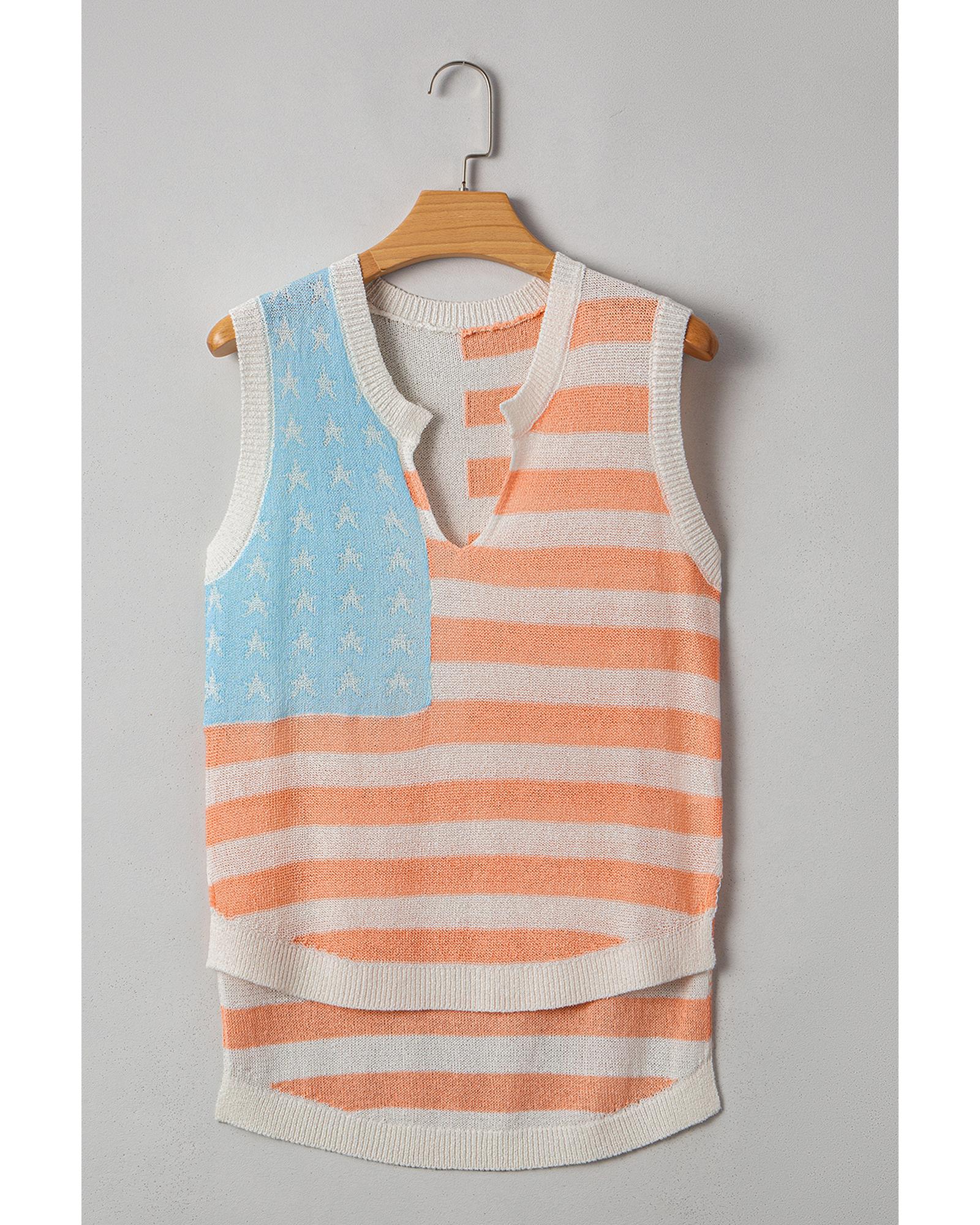 - Beige USA Flag Notched Neckline Loose Sweater Vest