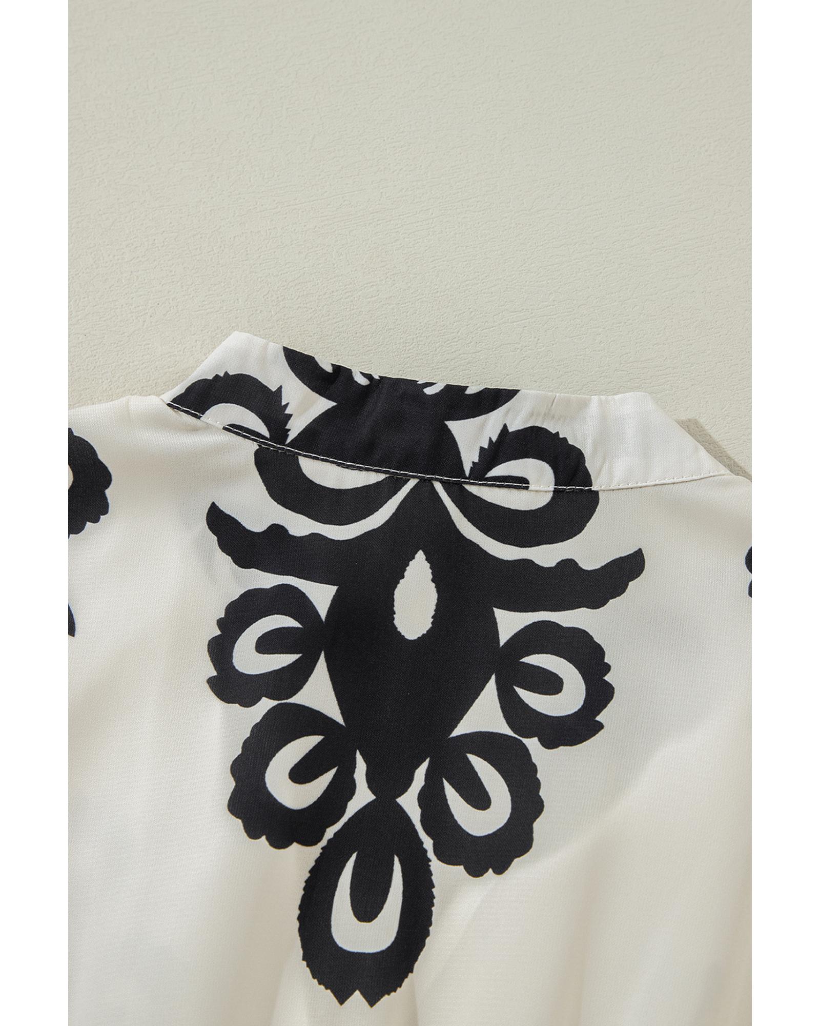 Beige Western Geometric Print 3/4 Sleeve Loose Midi Dress – L
