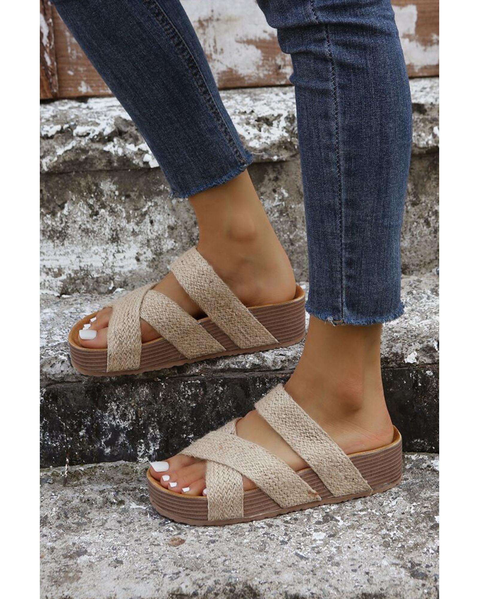 Beige Woven Cross Criss Hollowed Slip-On Slippers - 41 EU