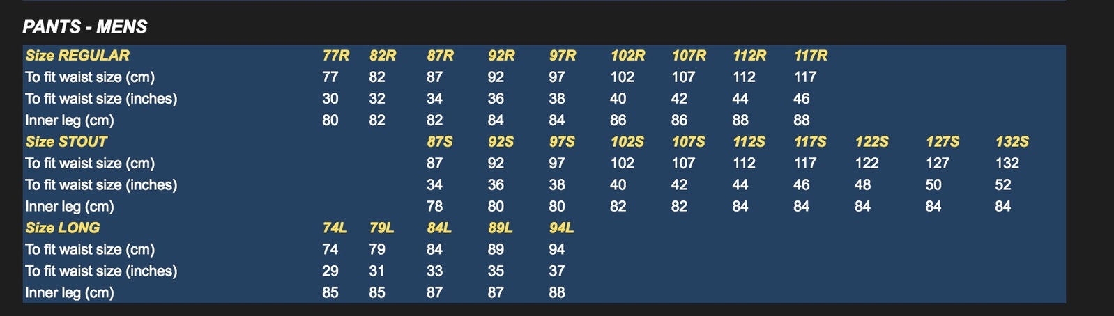 - Coin pocket in waistband on right hand side
