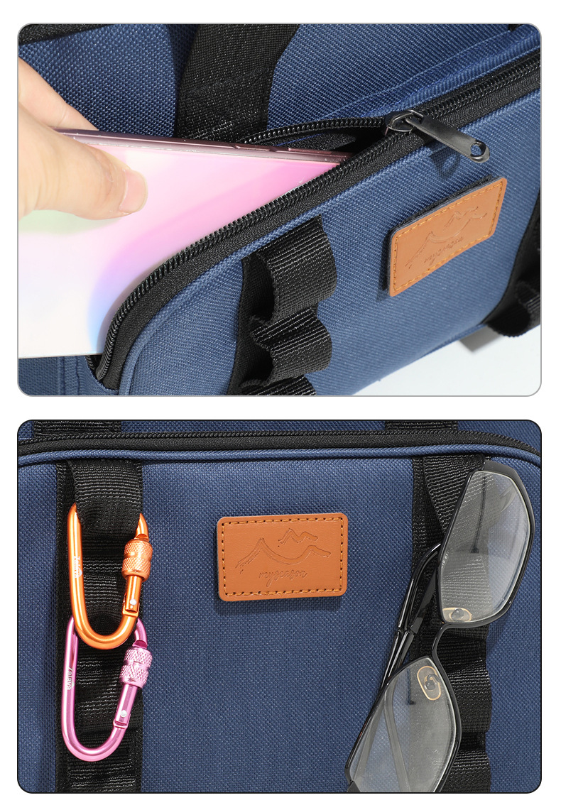 • Convenient Features: Equipped with a bottle opener, side pockets, a front pocket, and an external strap for additional storage and functionality.