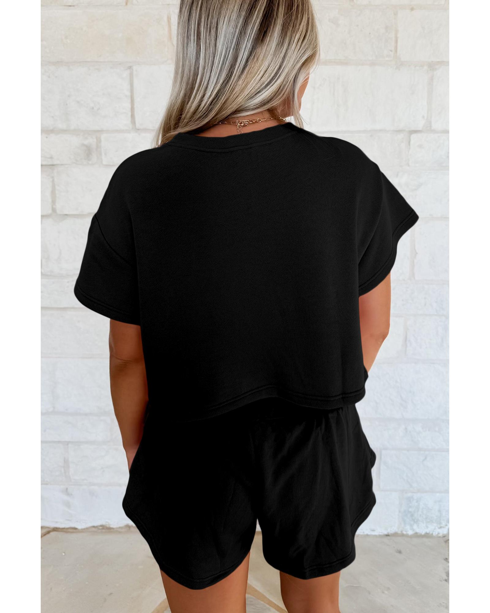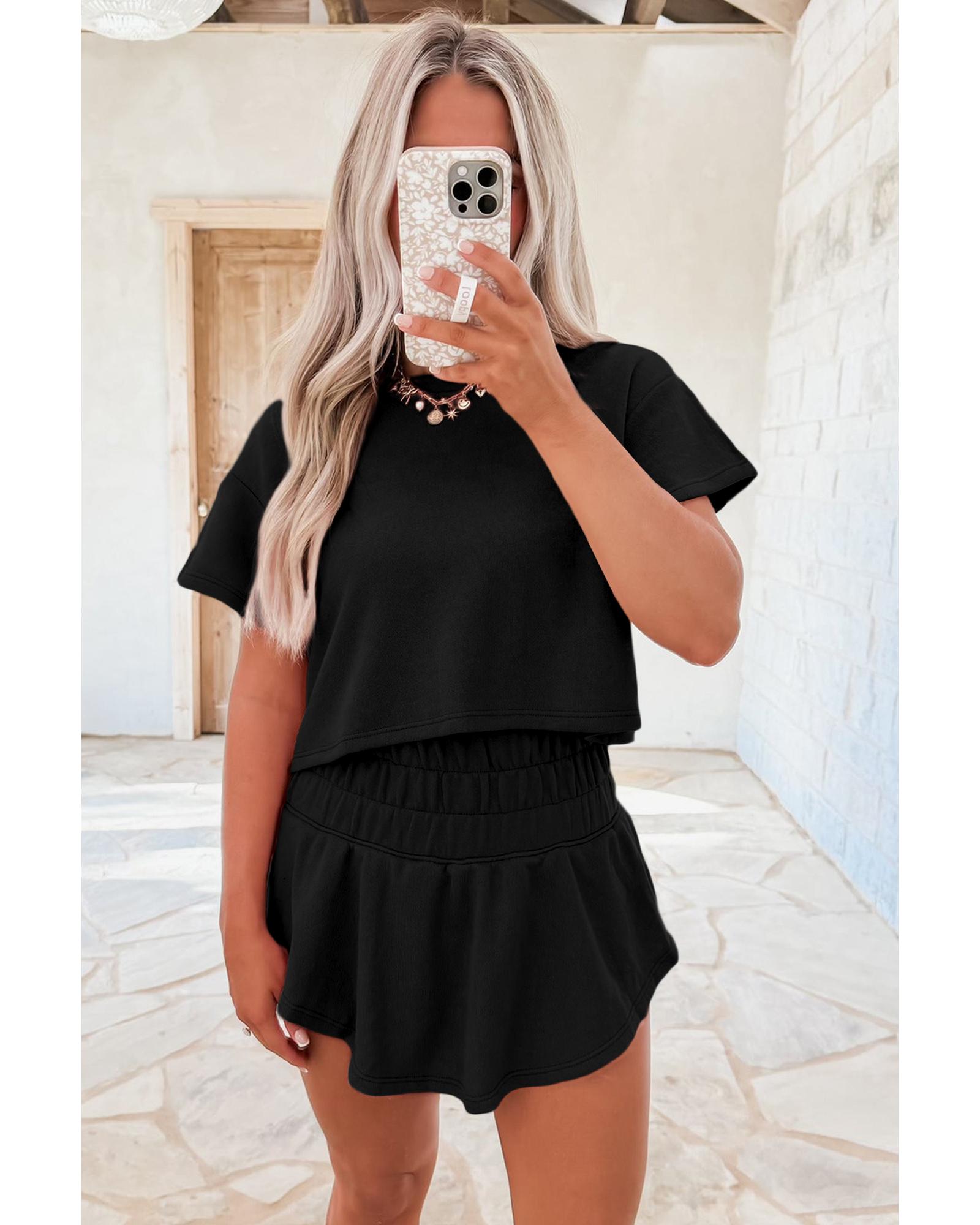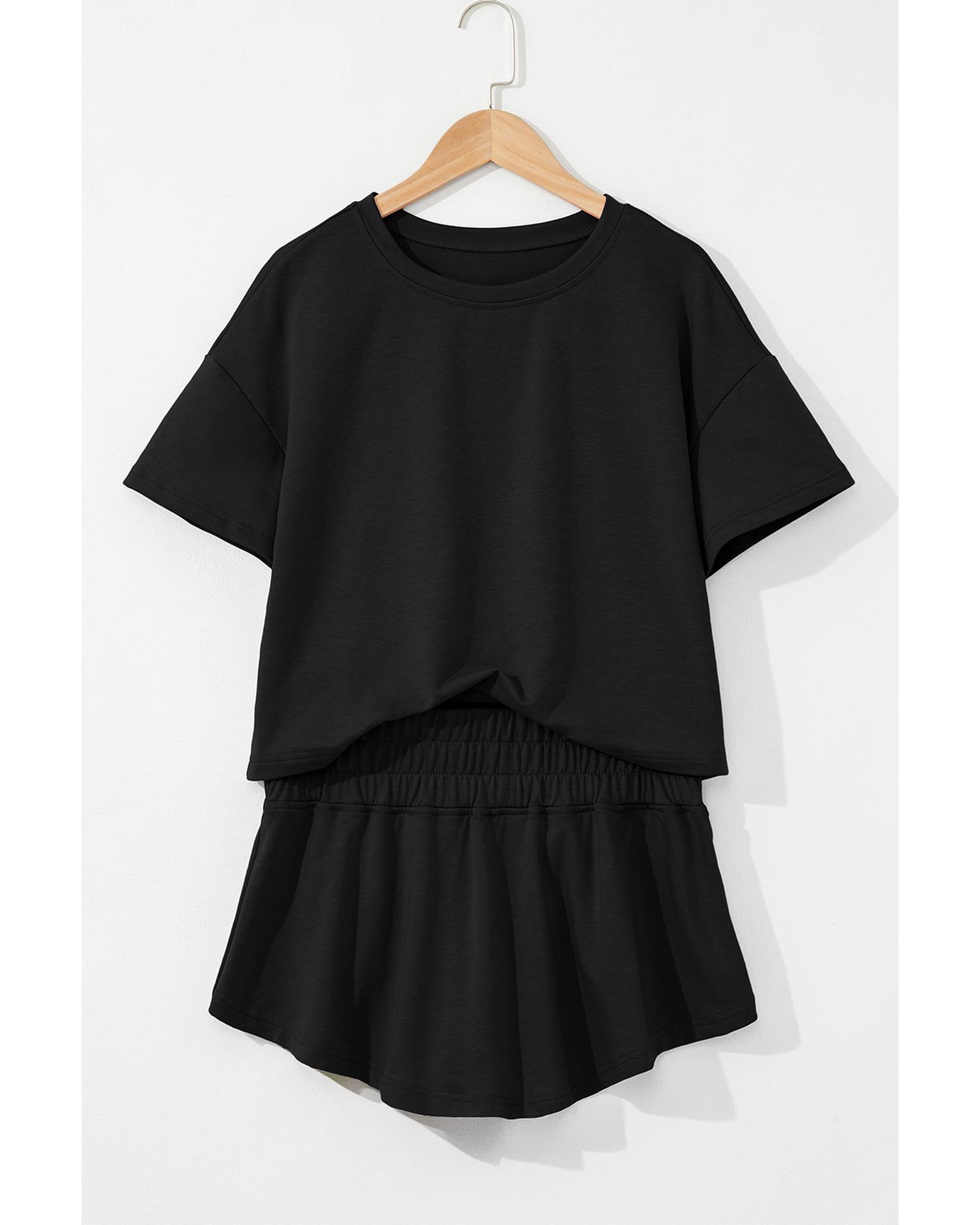 Black 2pcs Cropped Tee and Ruffle High Waist Skort Set – XL