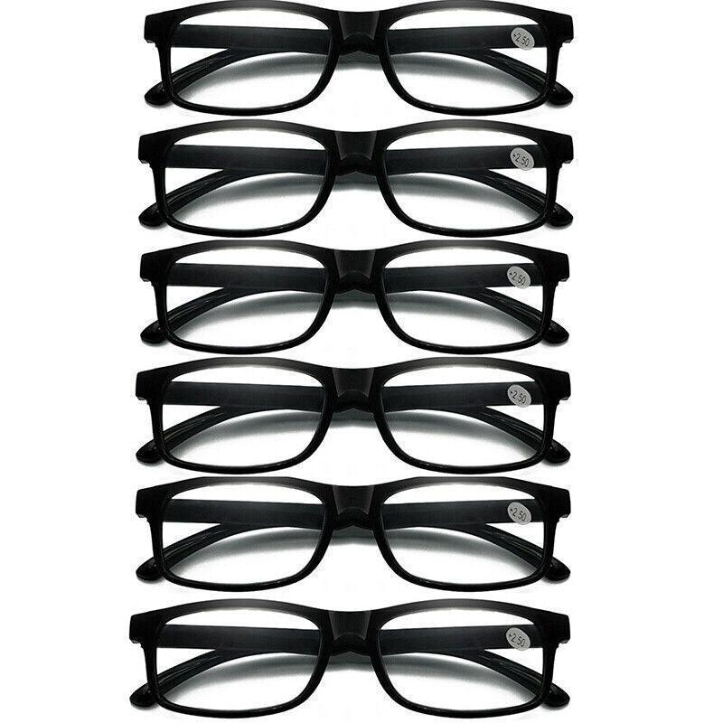 6 Pairs of Black Reading Glasses: Includes six identical black-frame glasses, ideal for daily rotation or multiple users.