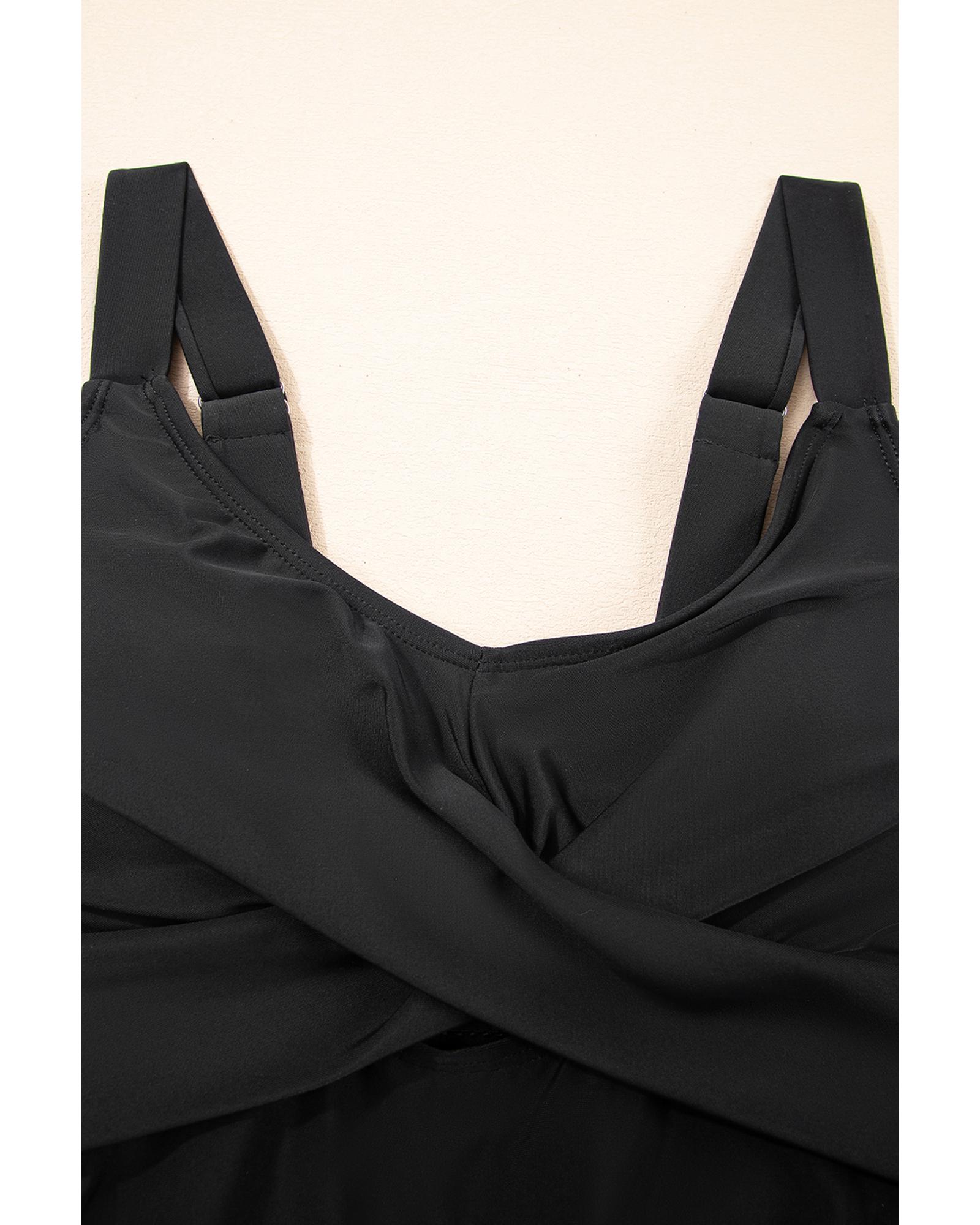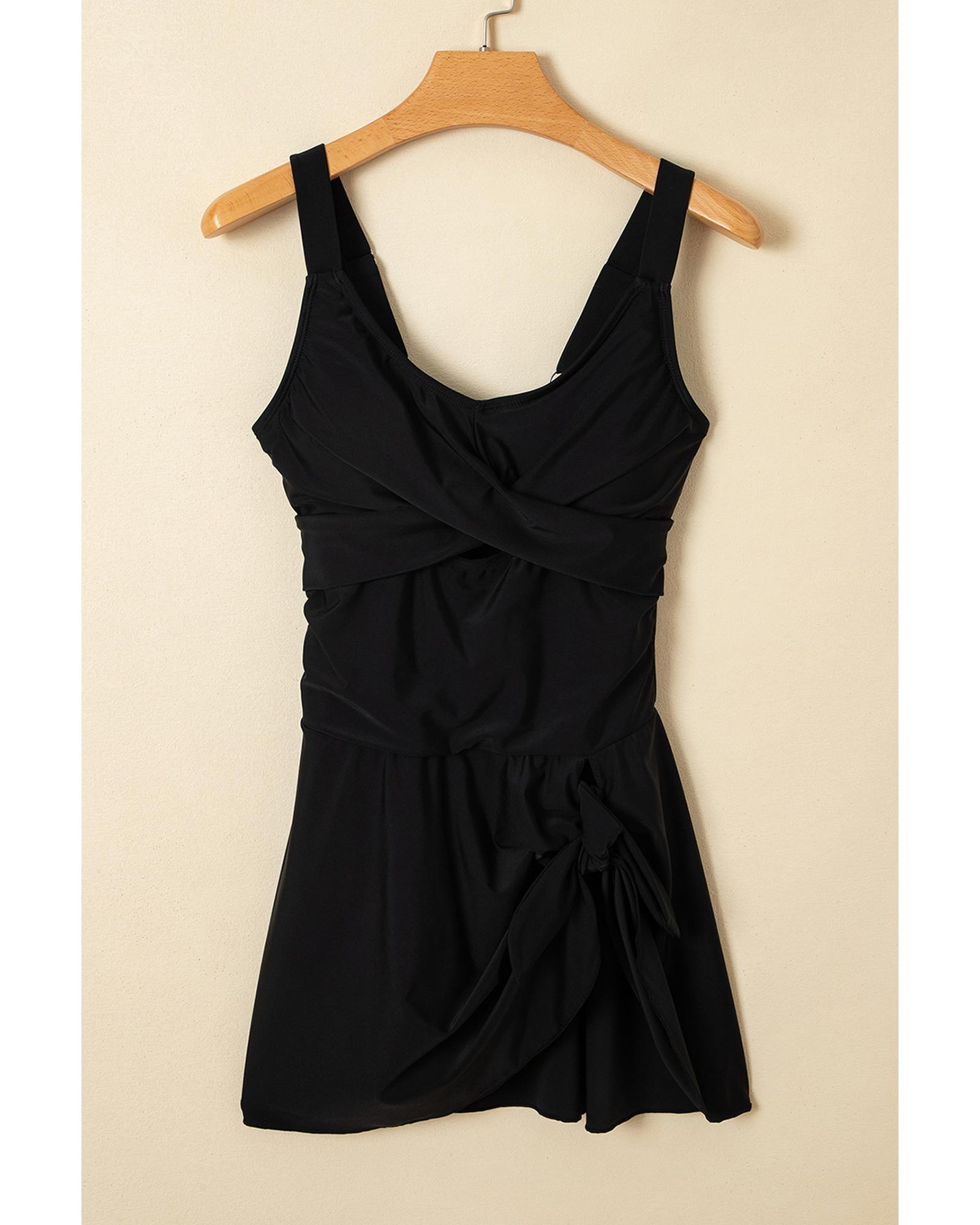 Black Adjustable Straps Cutout Ruched Knot Slit One Piece Swim Dress – L