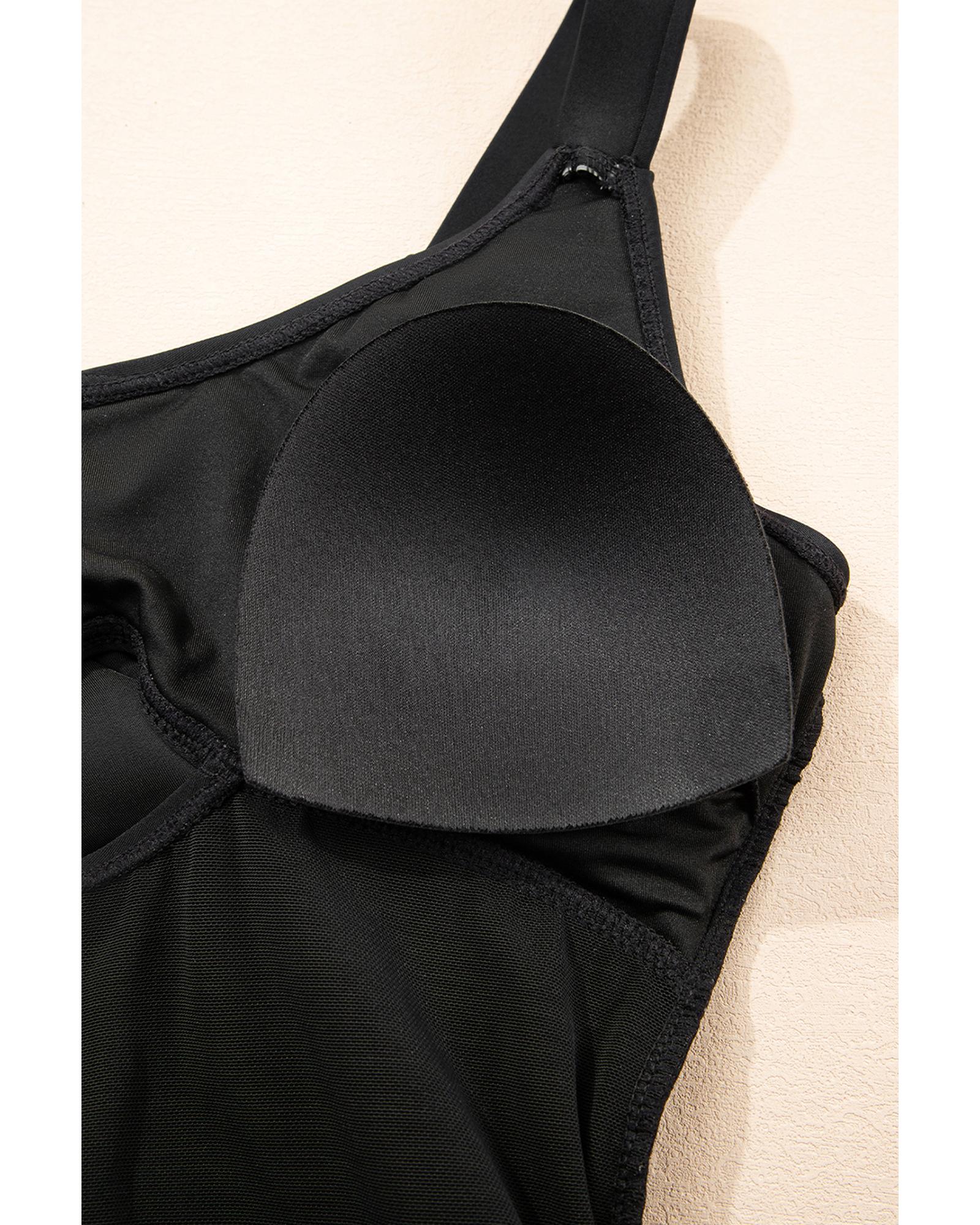 Black Adjustable Straps Cutout Ruched Knot Slit One Piece Swim Dress – S