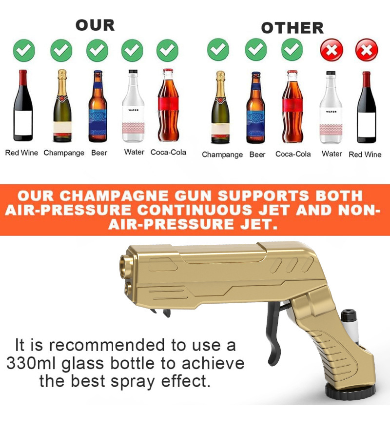 Elevate your celebrations with this exciting Champagne and Beer Gun Sprayer. Designed for fun and flair, this novelty gadget turns any bottle of bubbly or beer into a super soaking sprayer, perfect for birthdays, weddings, club nights, festivals, or poolside parties.