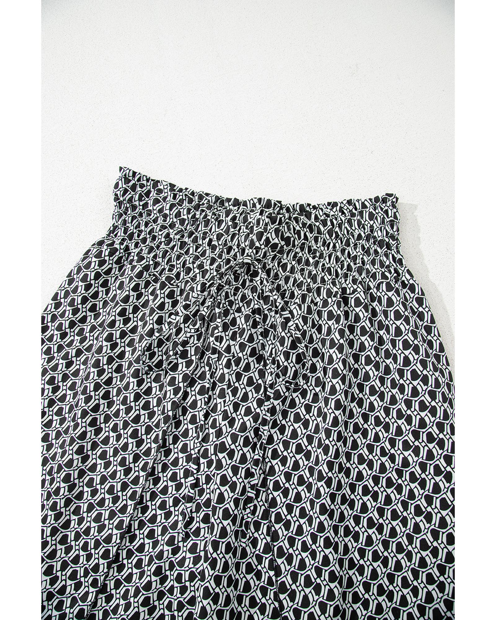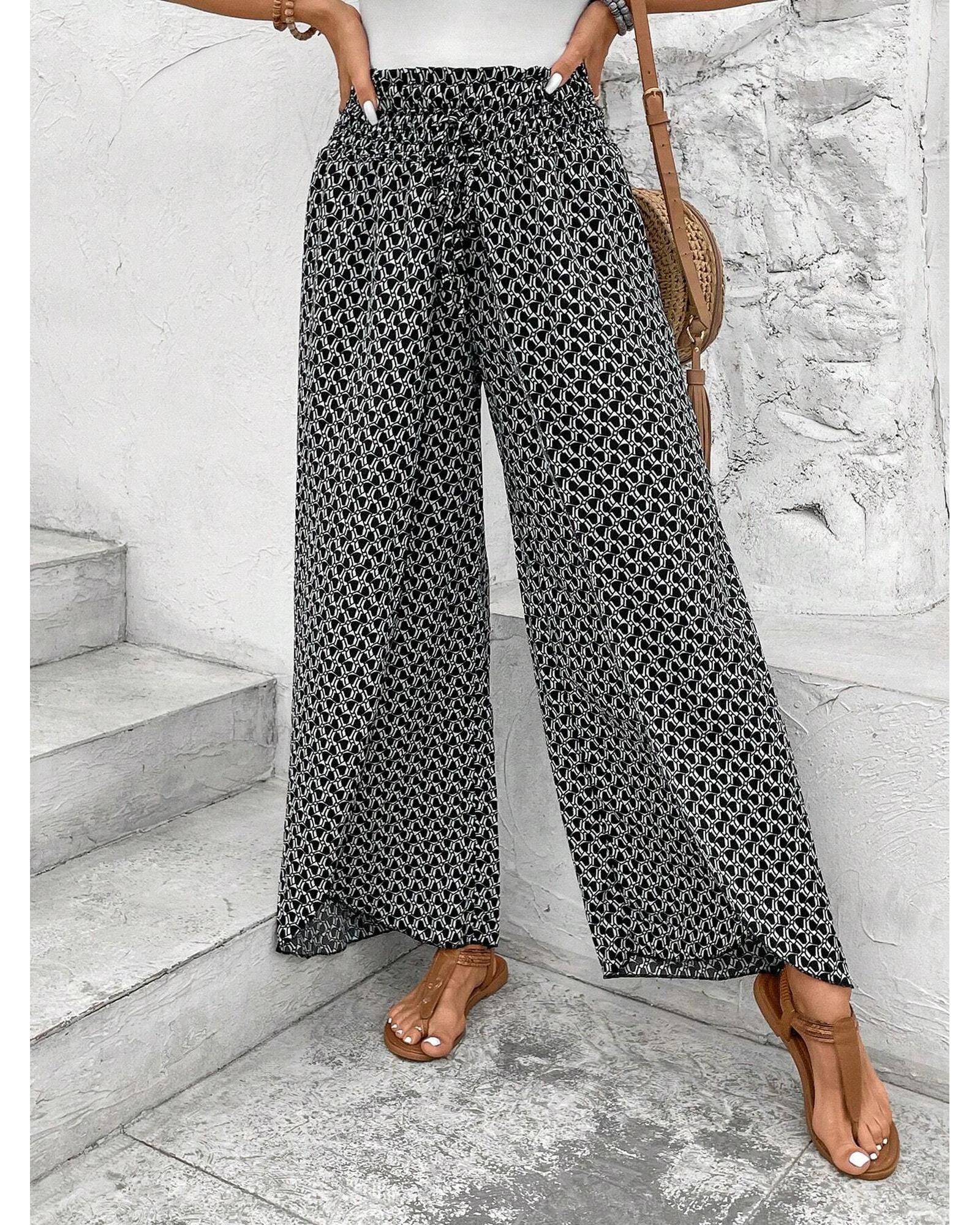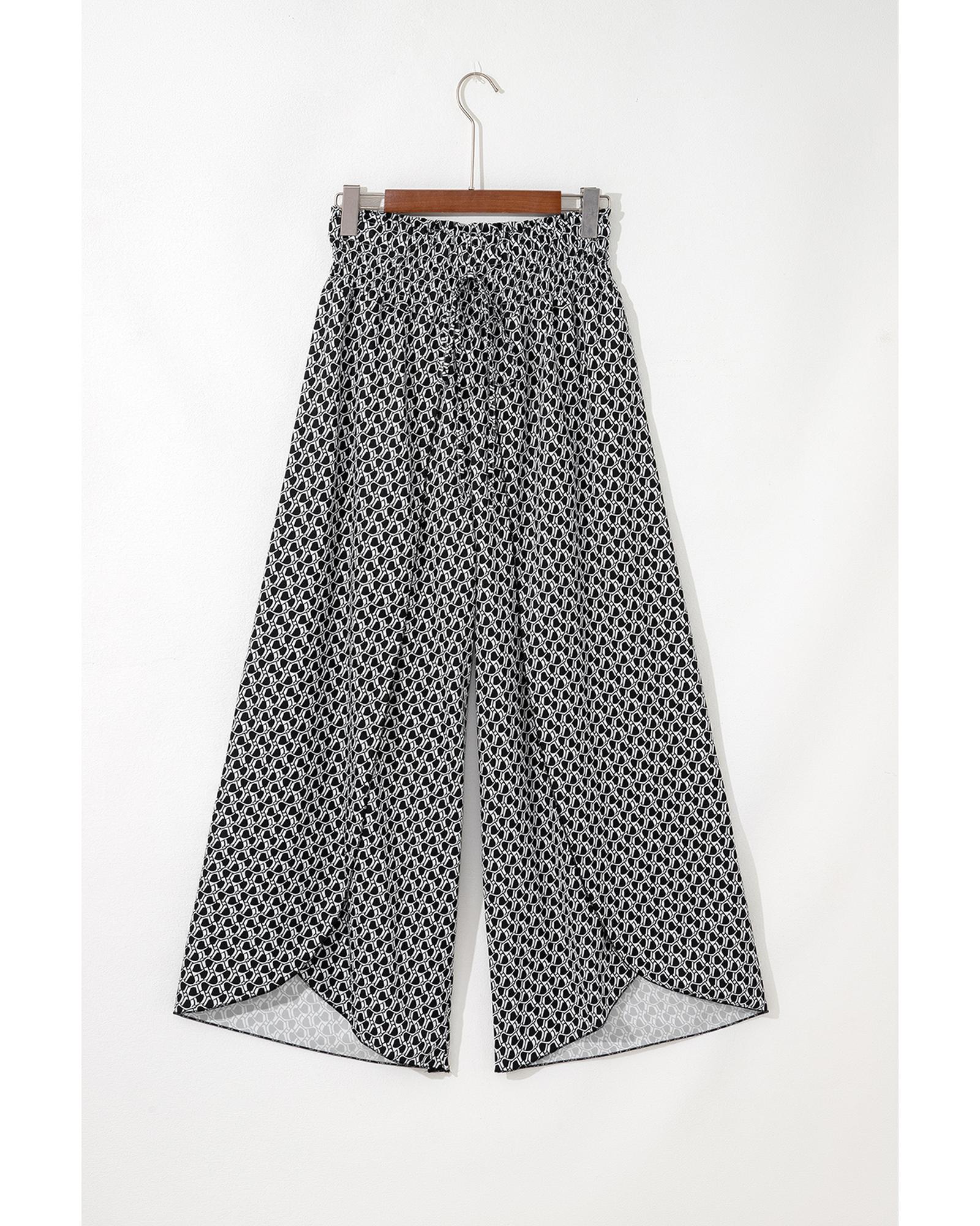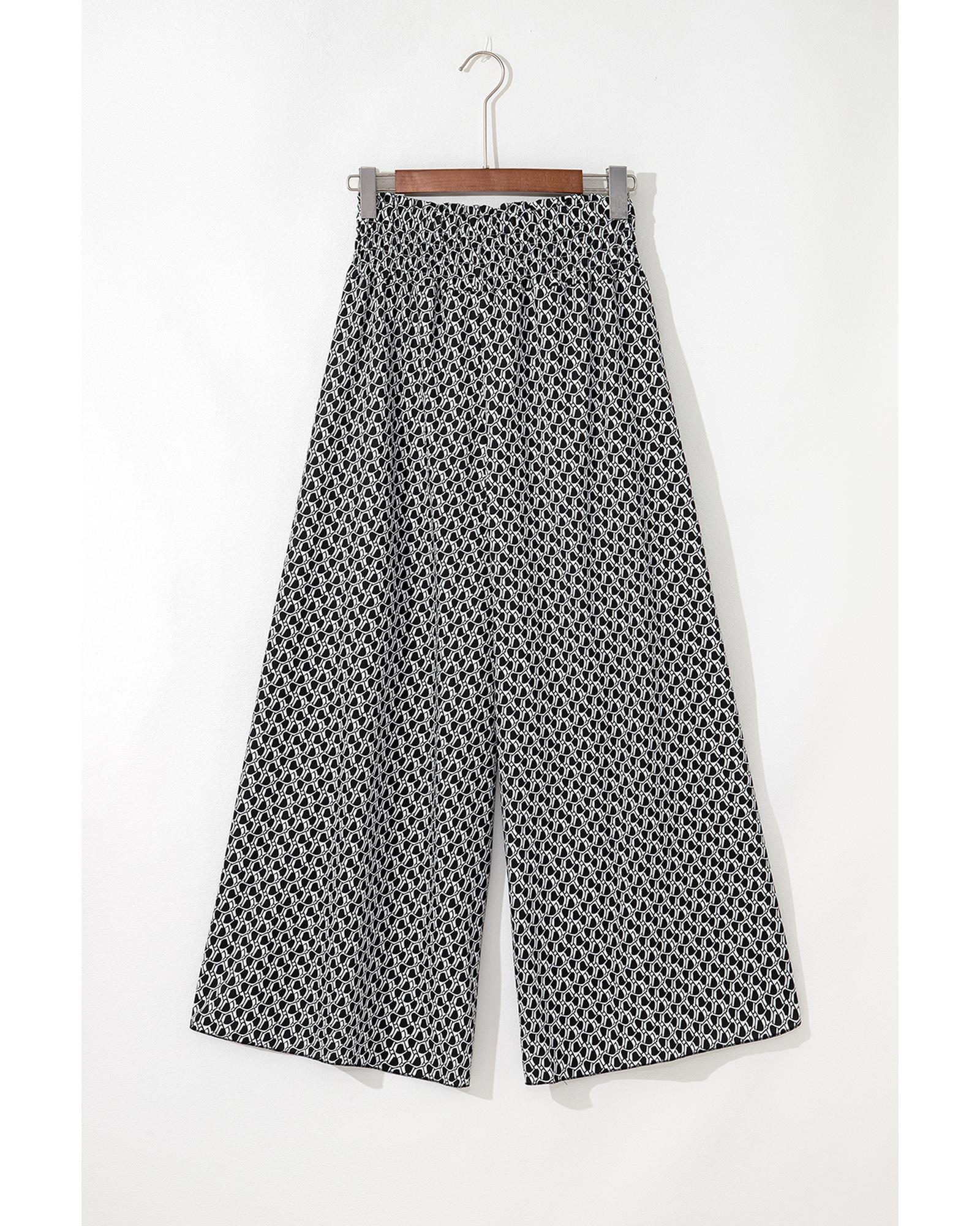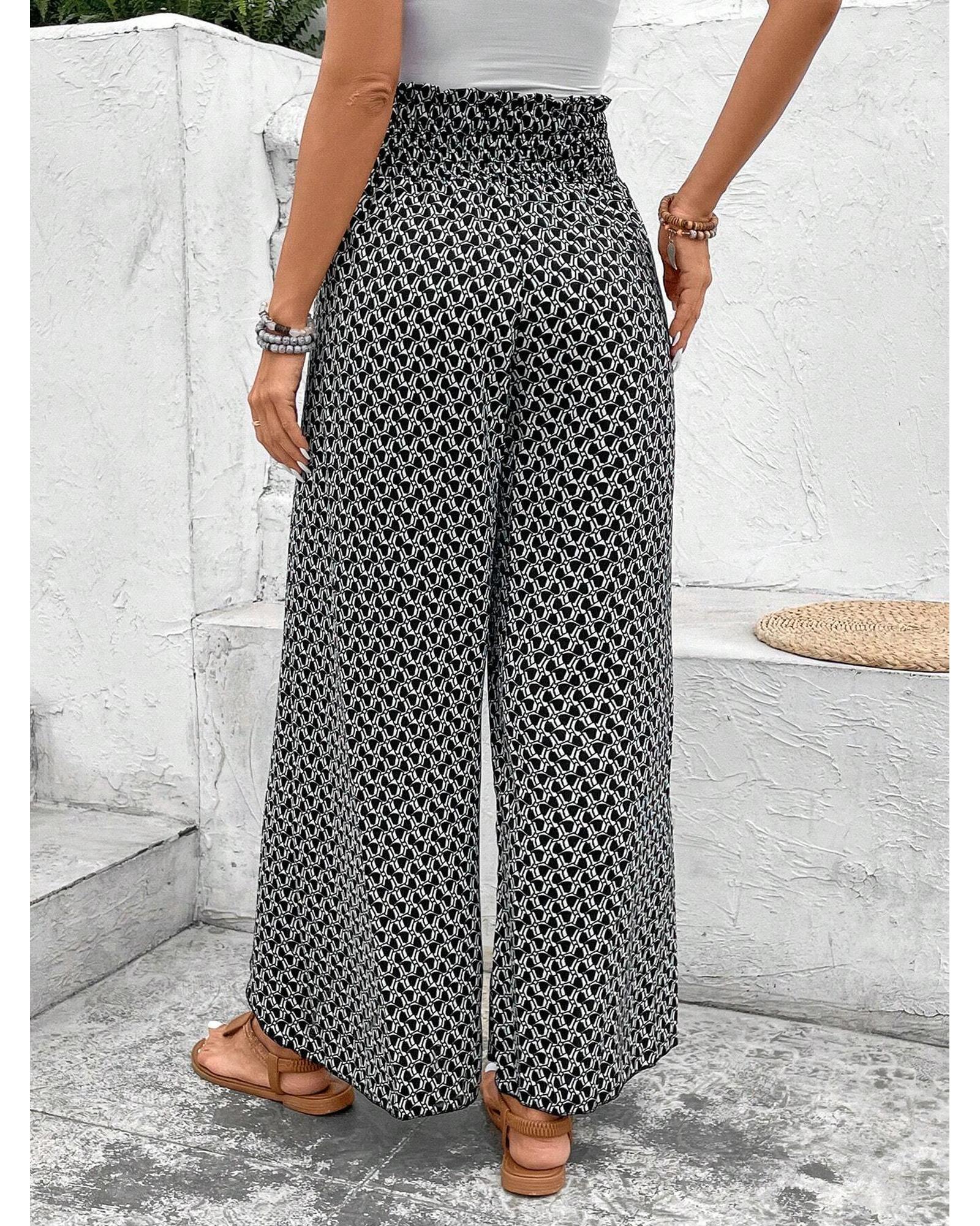 Black Bohemian Print Slit Wide Leg Smocked High Waist Pants – XL
