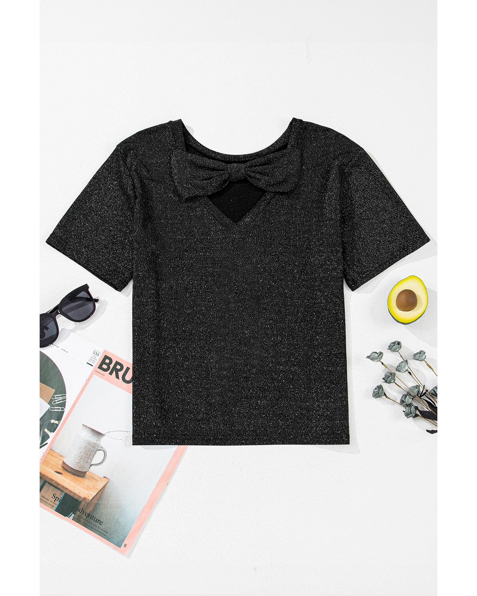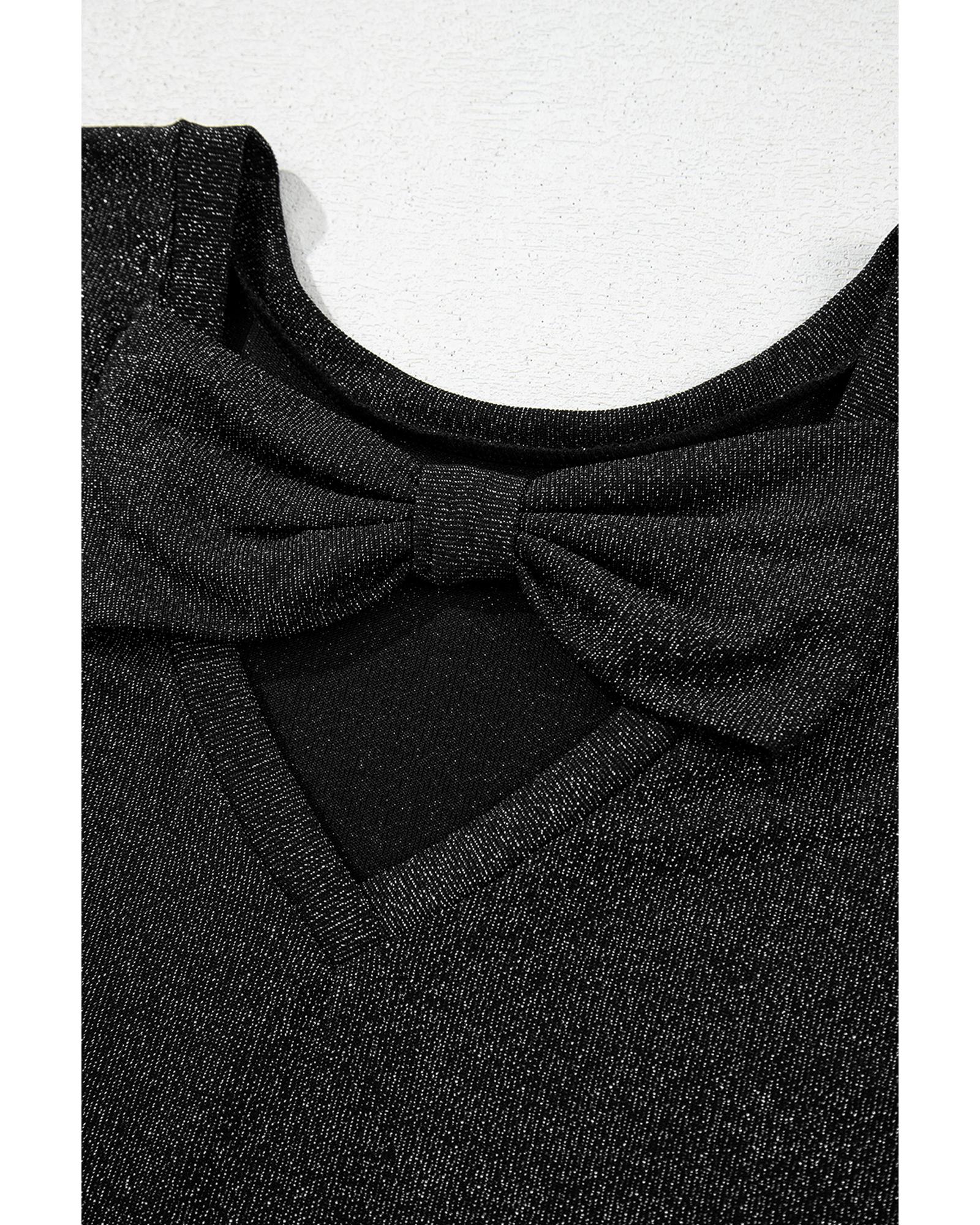 - Black Bow Decor Glittery Short Sleeve Top