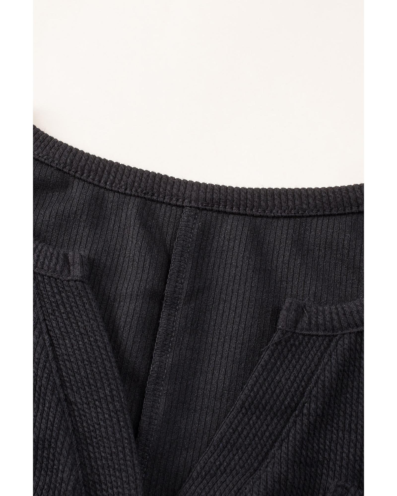 Black Brushed Ribbed Button Split V Neck Long Sleeve Romper – 2XL