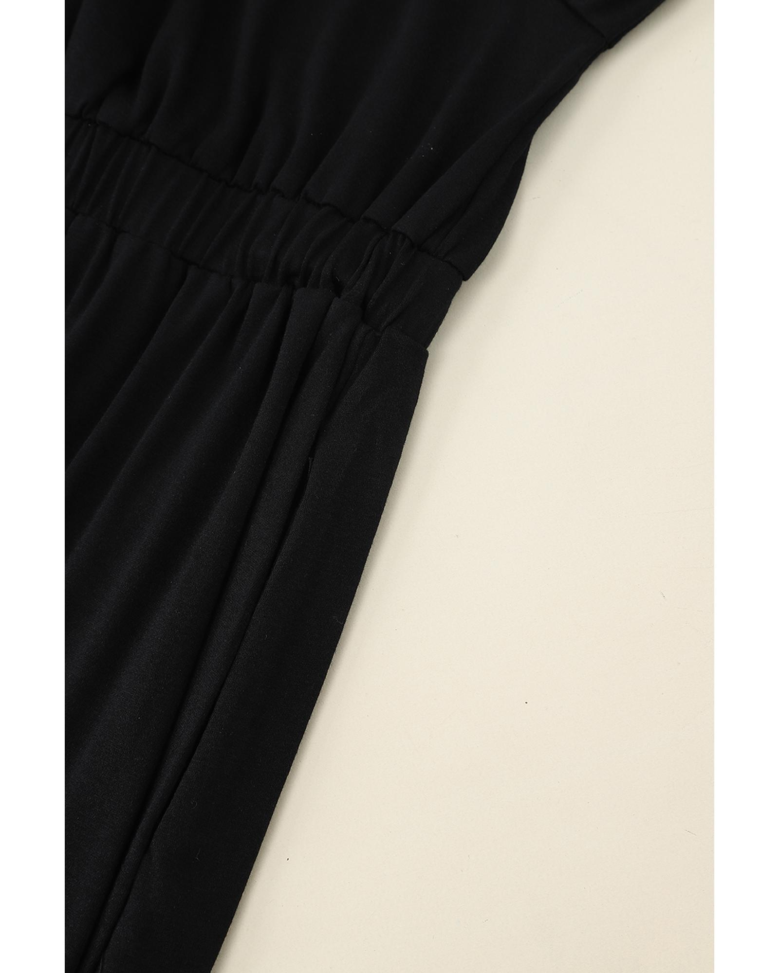 Black V Neck Hidden Pocket Splits Maxi T-shirt Dress - L
