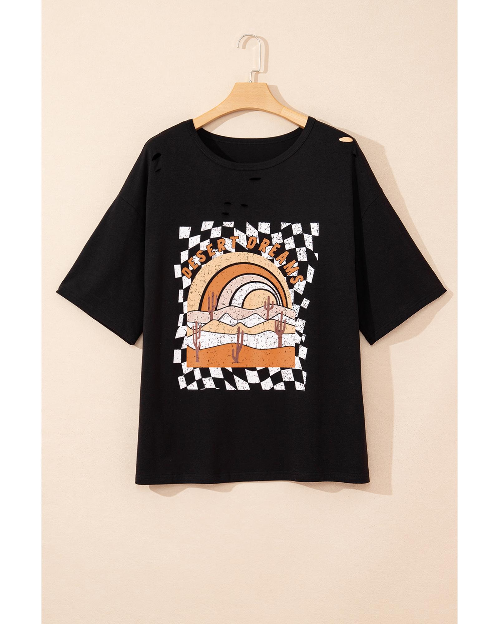Black Checkerd DESERT DREAMS Printed Ripped Plus Size Tee – 2X