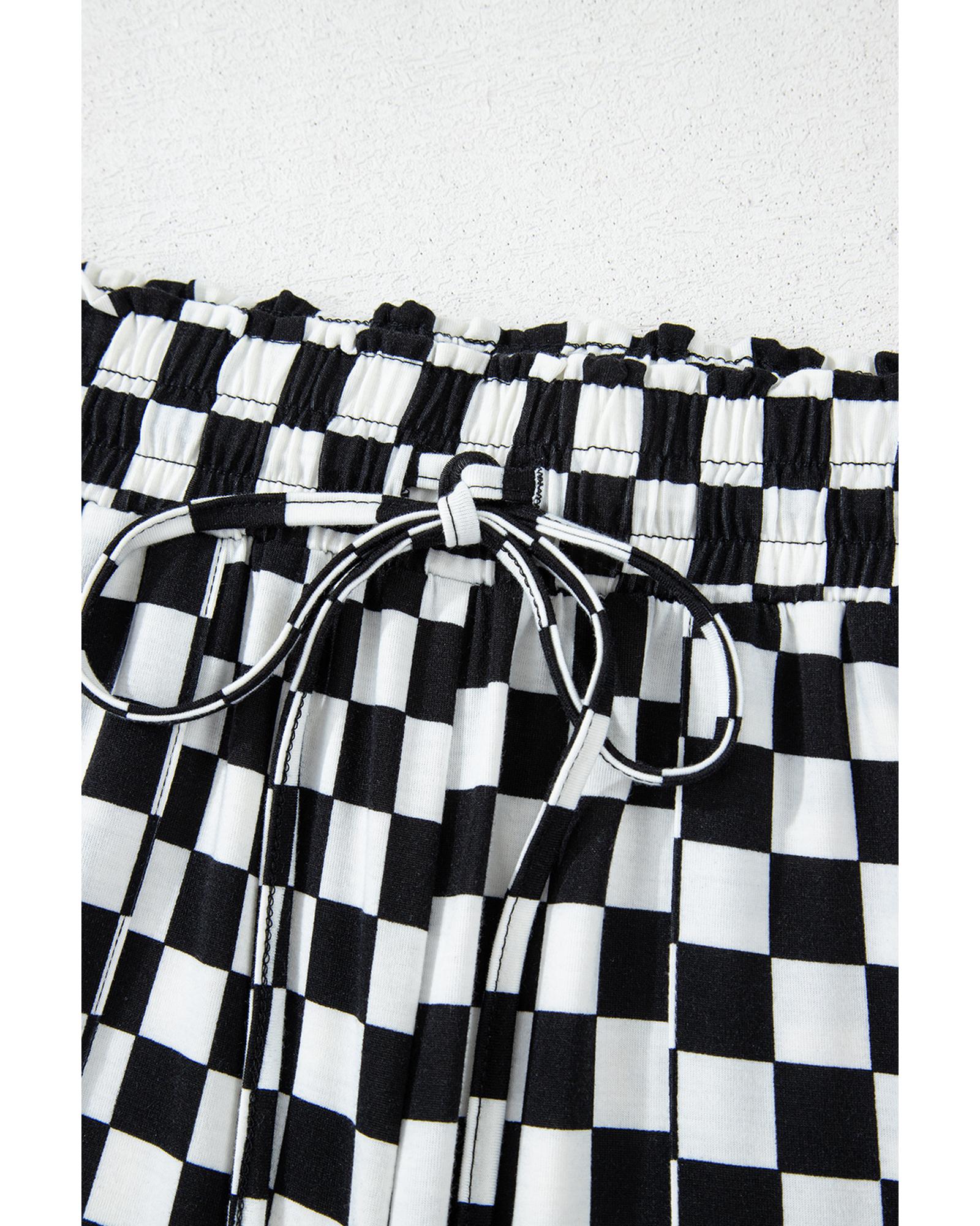 Black Checkered Print Long Sleeve Top and Pants Lounge Set – M