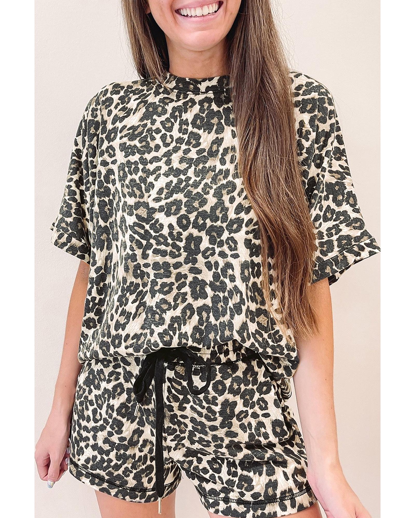 Black Cheetah Printed Casual Tee and Shorts Lounge Set – S