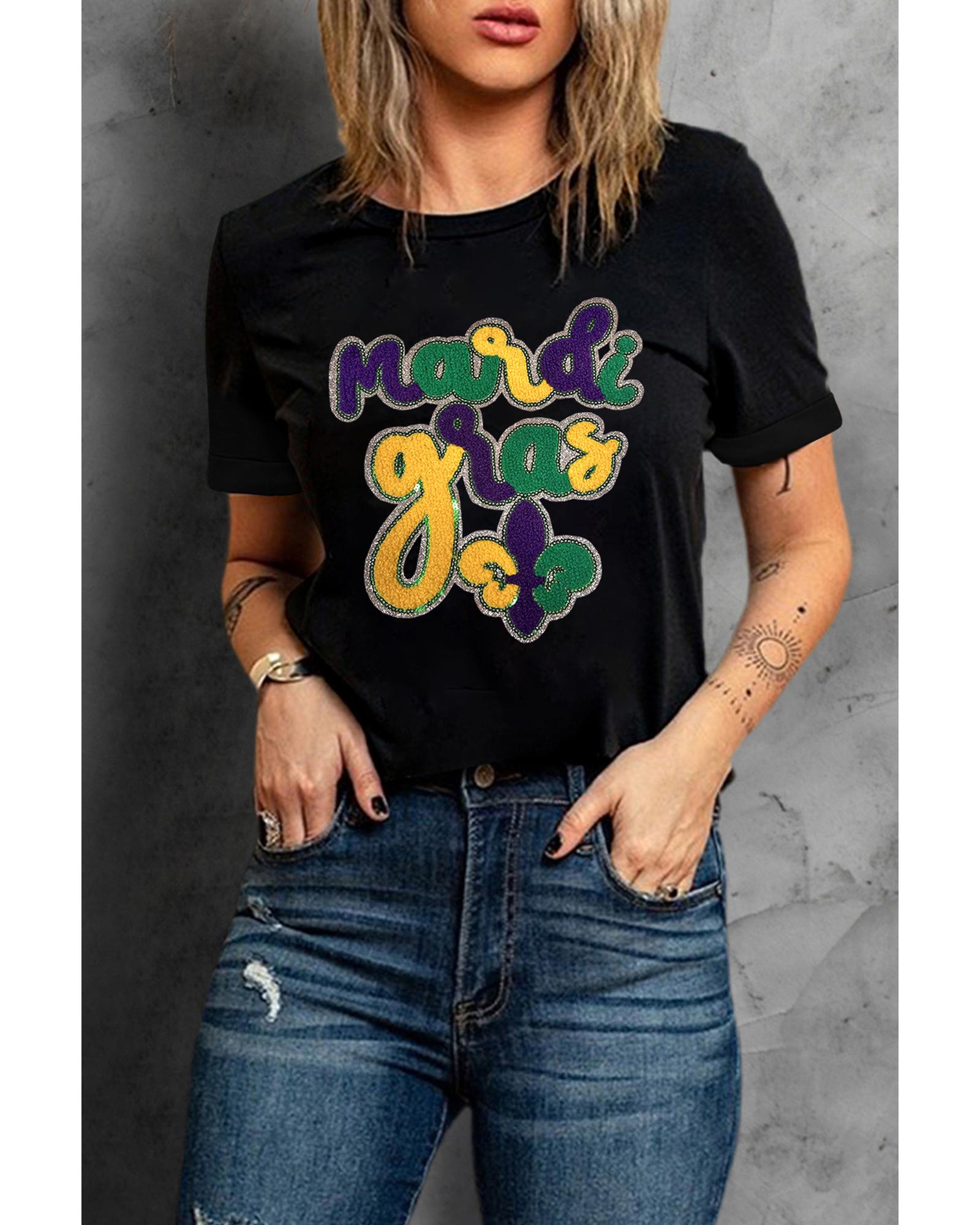 - Black Chenille Mardi Gras Letter Graphic Tee