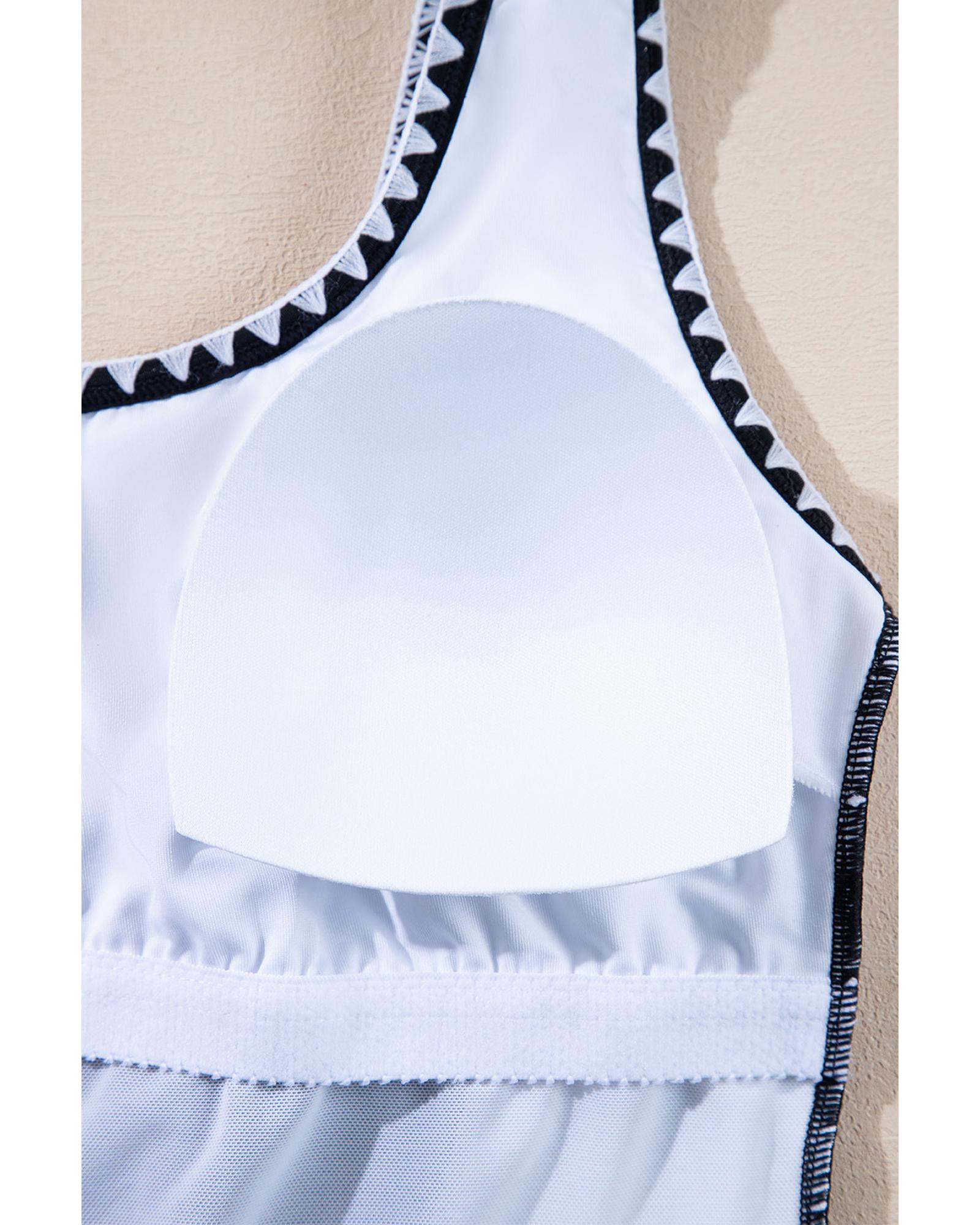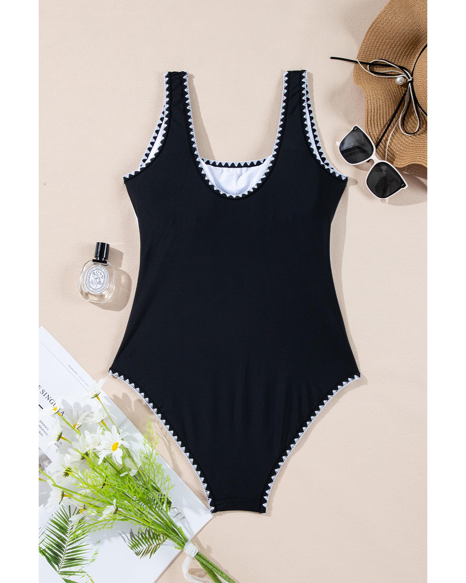 Black Color Block Ric Rac Trim U Neck One Piece Swimsuit – S
