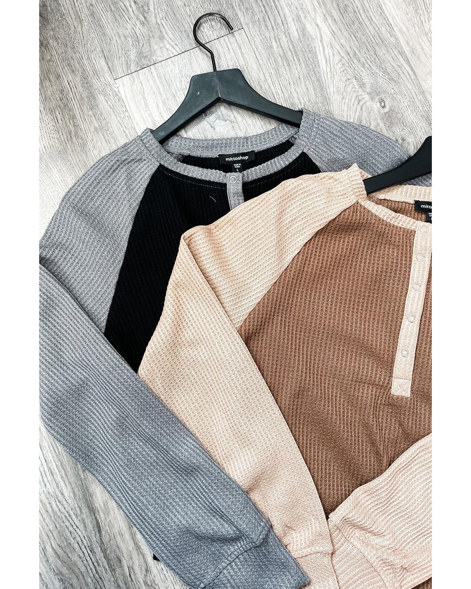 Peach Blossom Two Tone Contrast Waffle Knit Buttoned Loose Shacket - XL