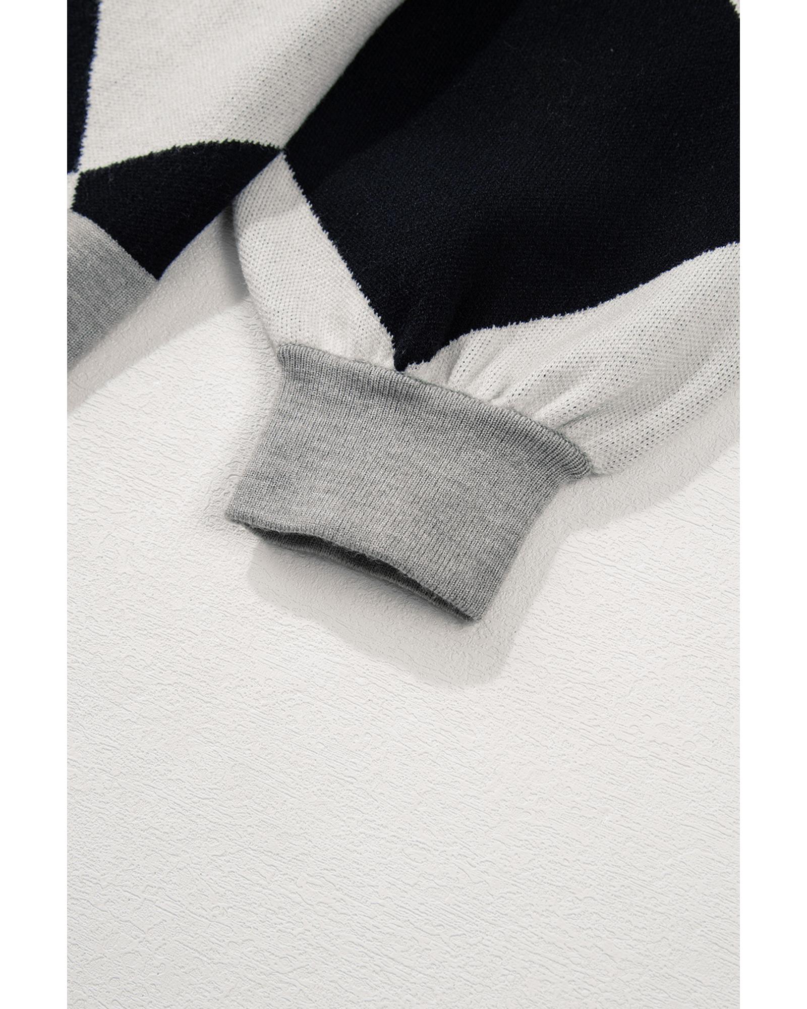 Black Colorblock Drop Shoulder Buttoned Loose Cardigan – M