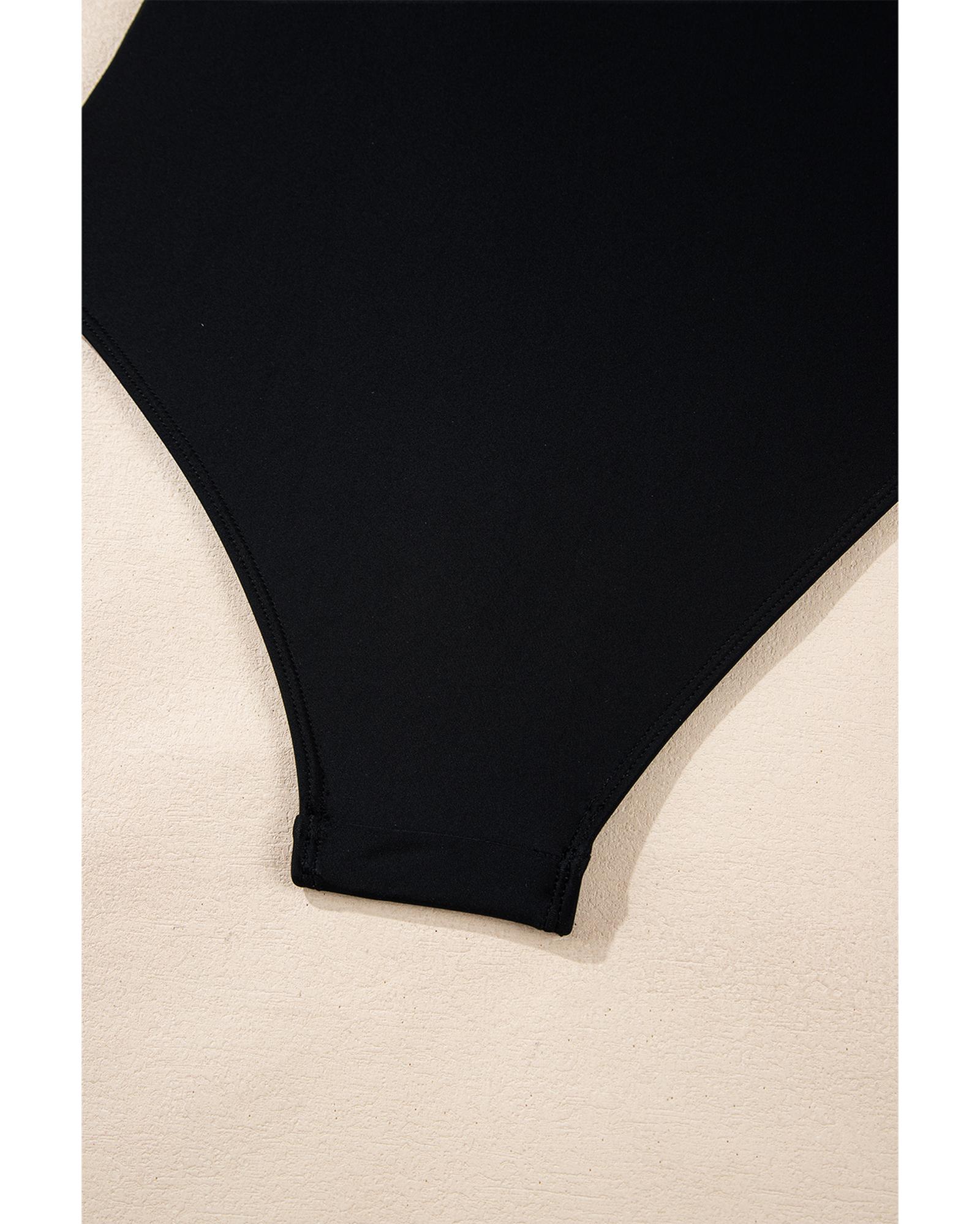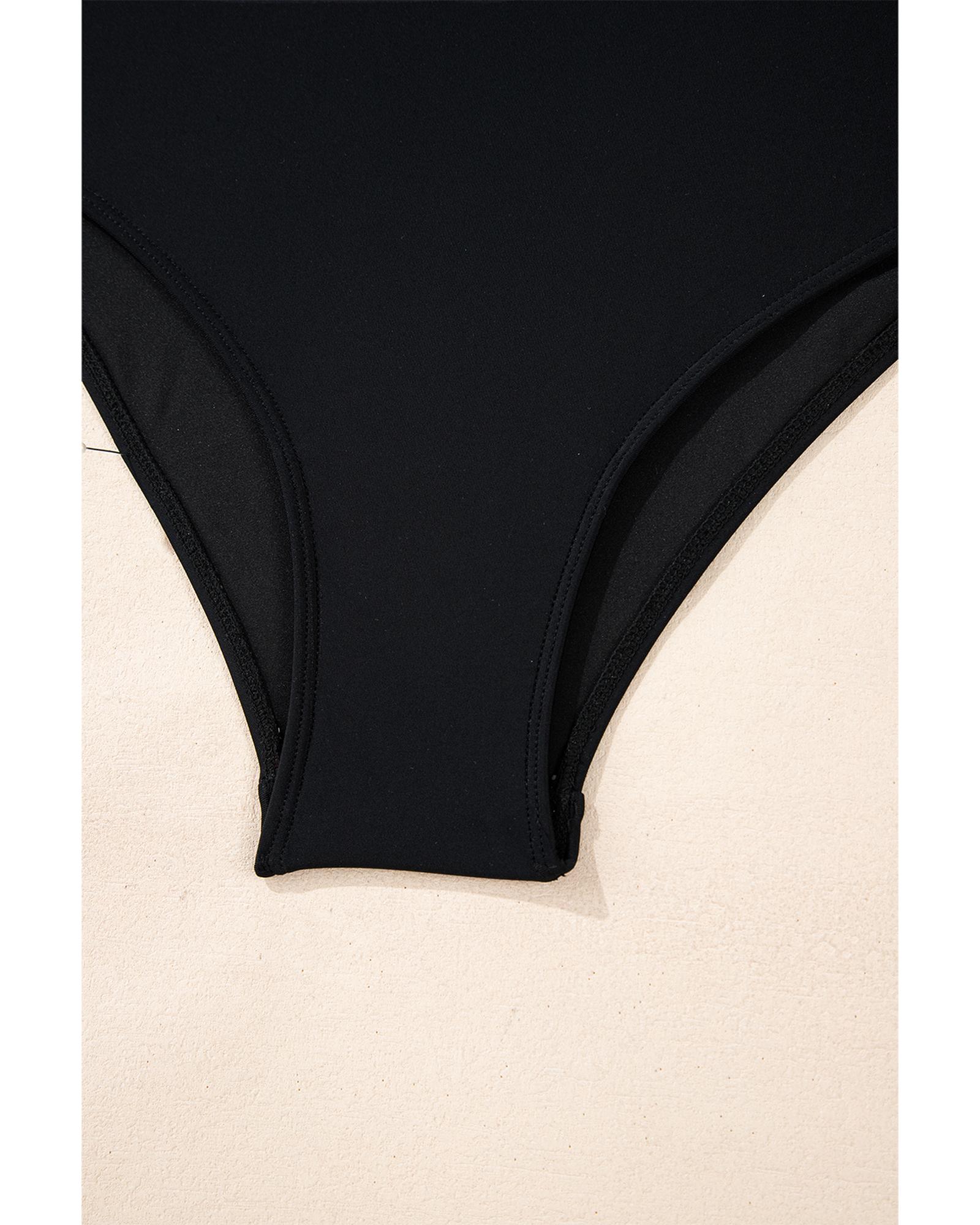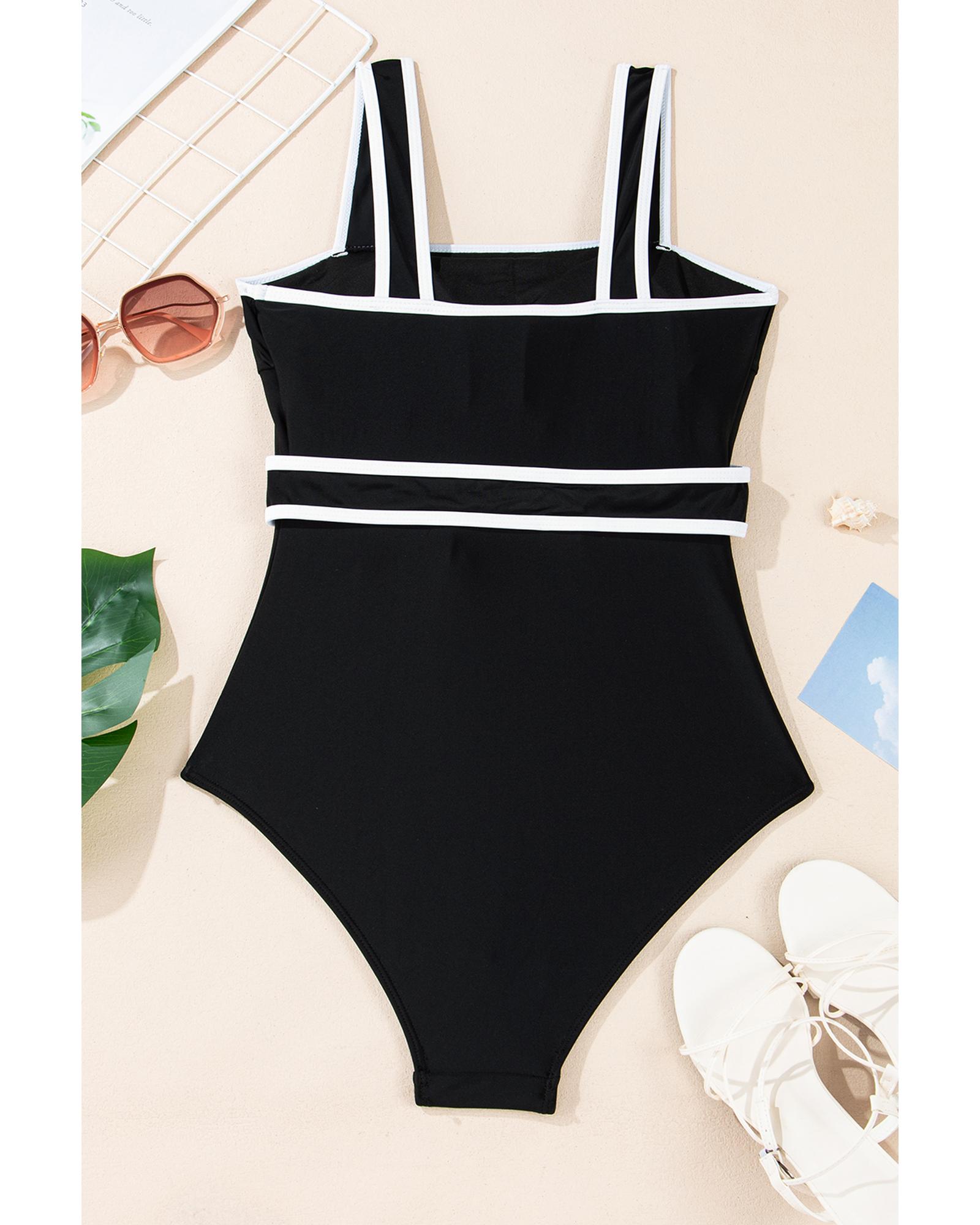 Black Colorblock Edge Belted One Piece Swimsuit – M