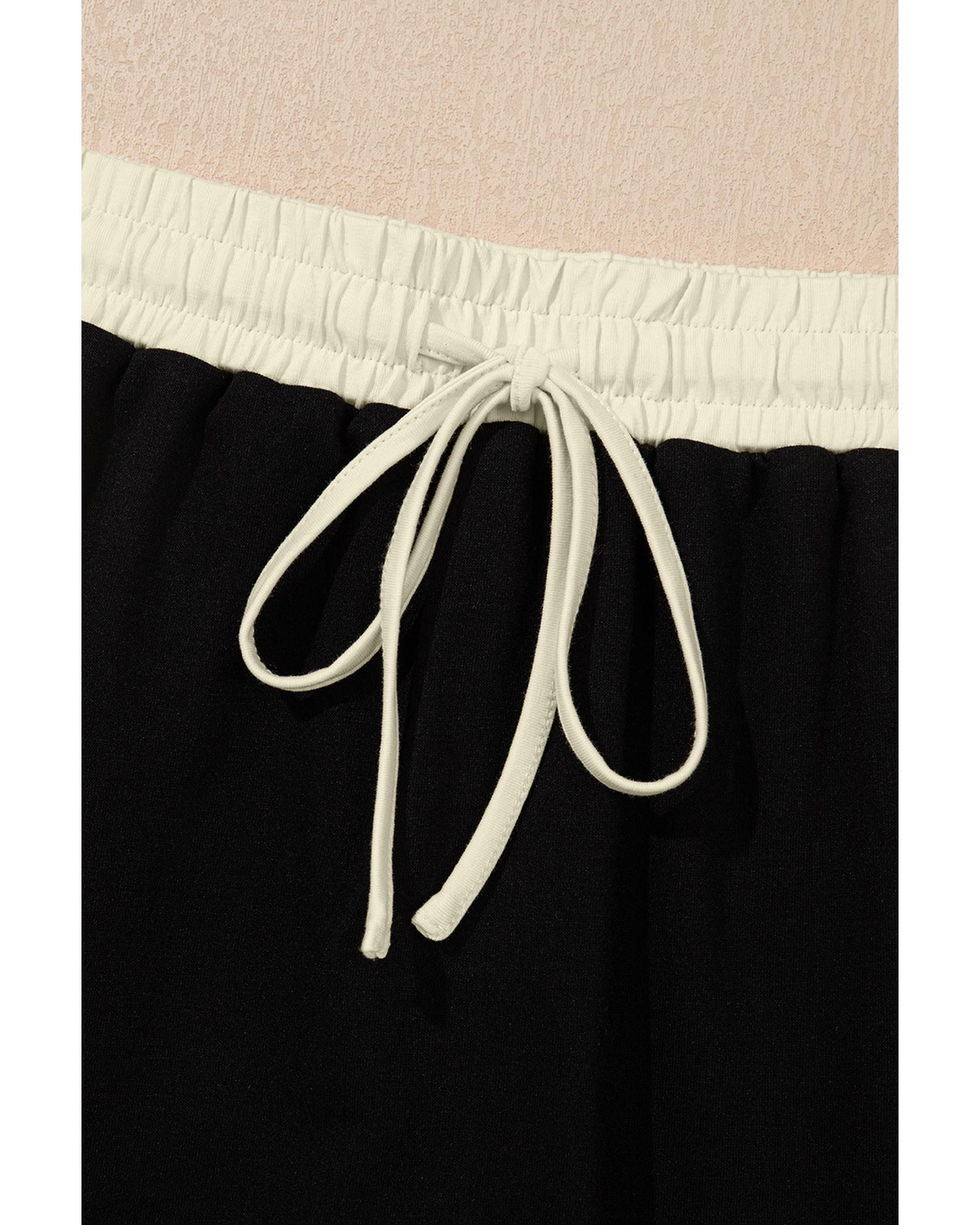 Black Colorblock Edge Drop Shoulder T Shirt and Skort 2Pcs Set – XL