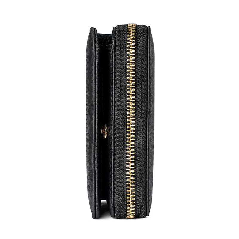 - Secure Zipper Closure: Features a smooth, reliable zipper closure for the main coin/change compartment, keeping your coins and valuables secure. A snap closure secures the card section.