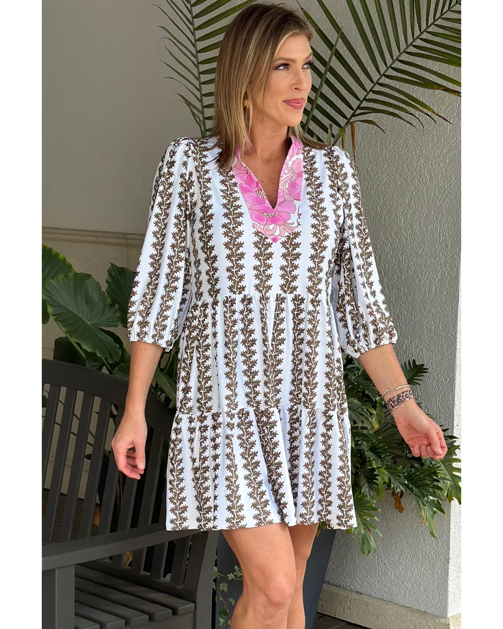 Black Contrast Floral V Neck Printed Bracelet Sleeve Dress – M