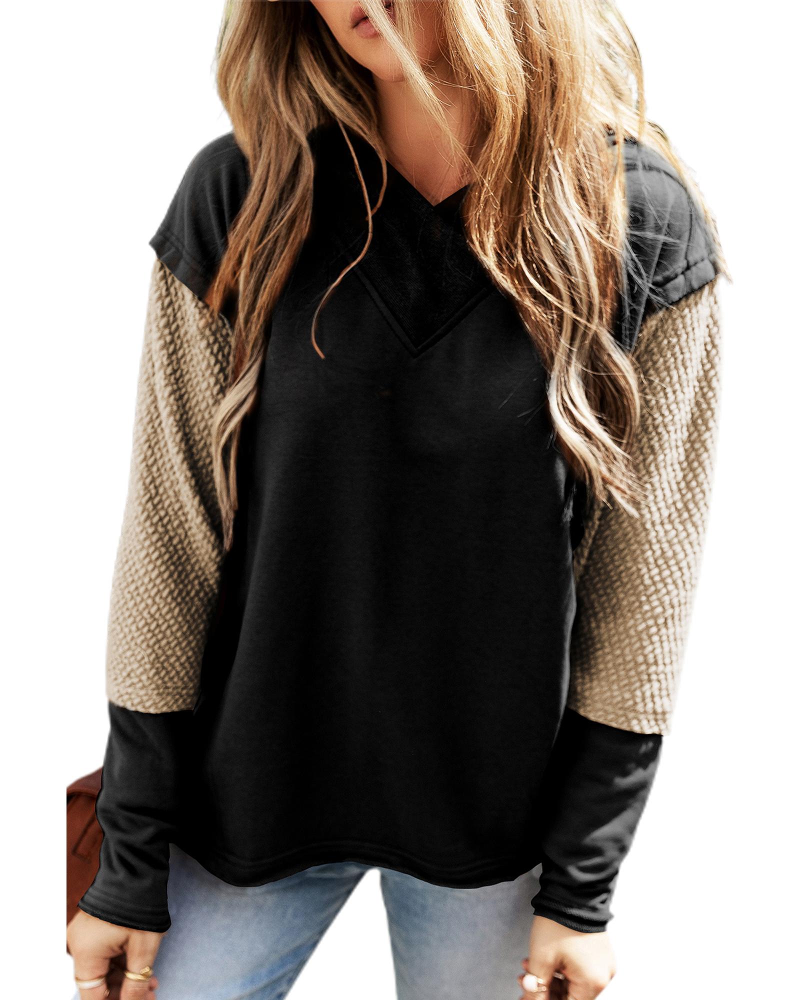 - Black Contrast Sleeves Patchwork Colorblock Hoodie