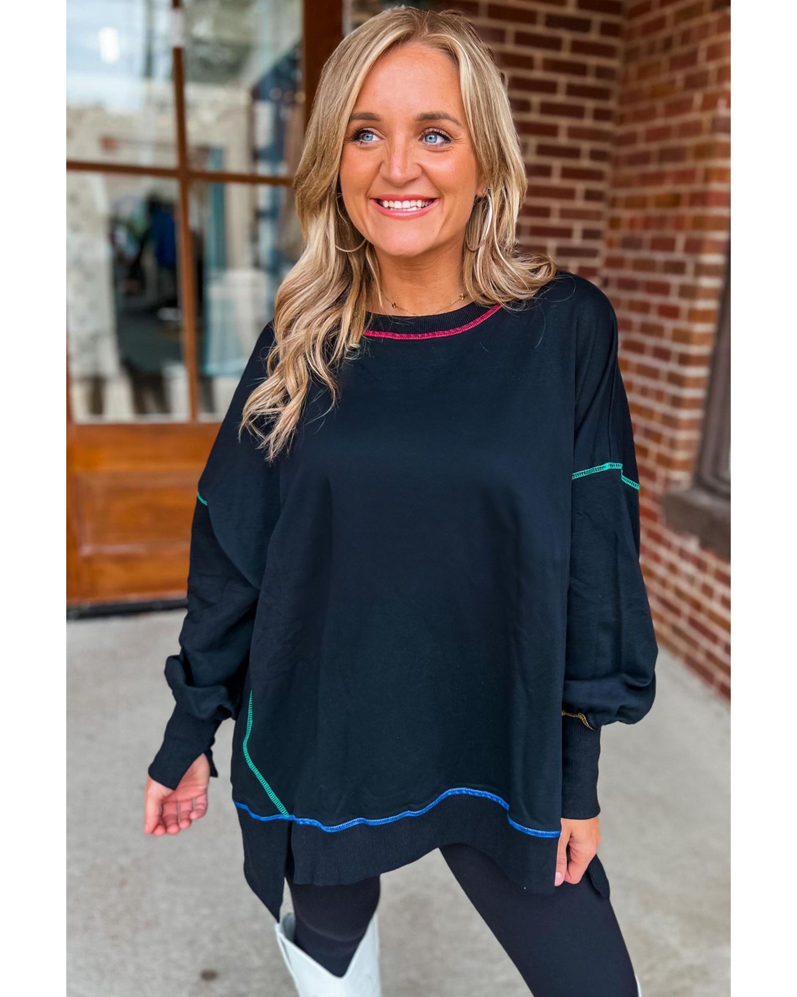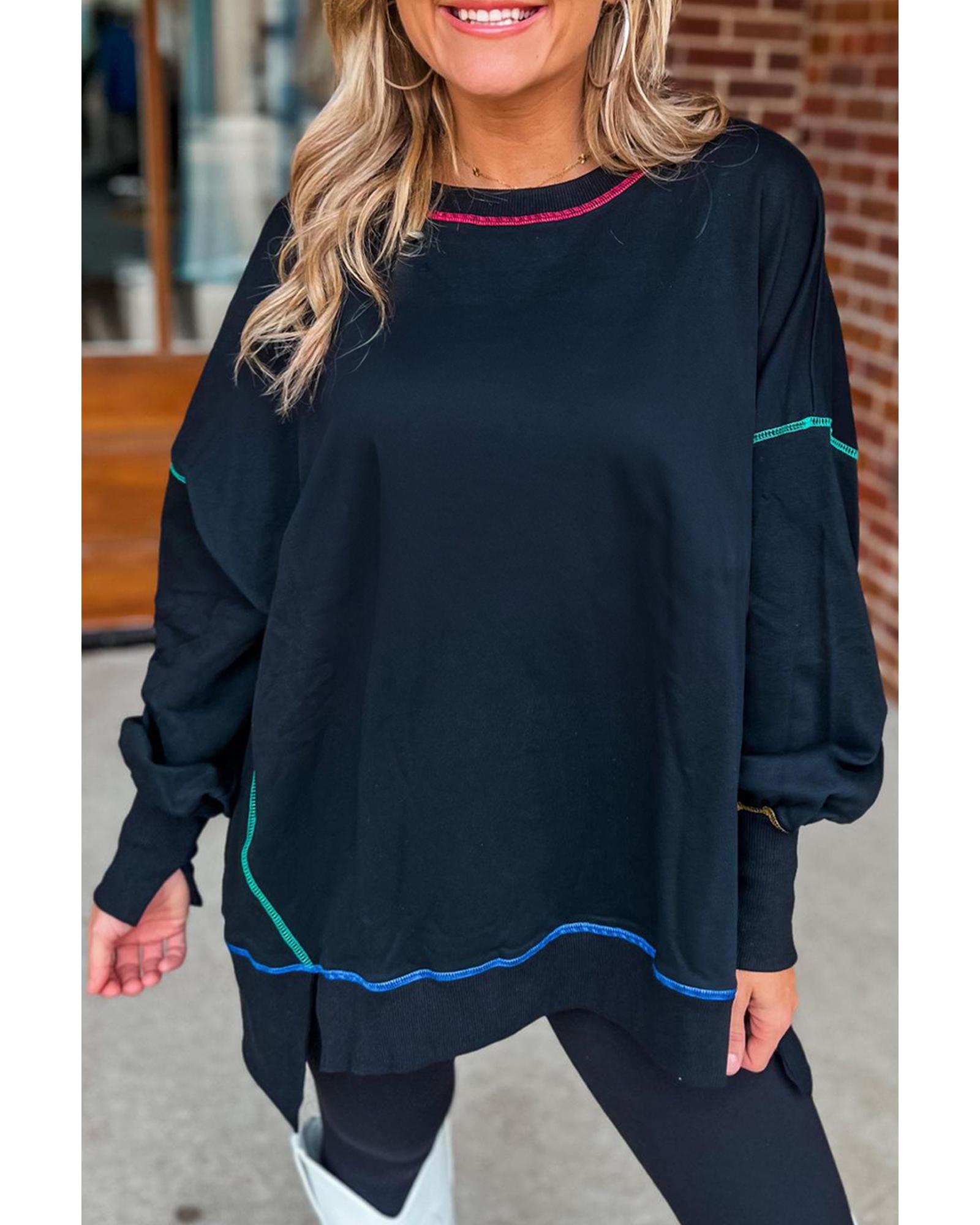 Black Contrast Stitching Split Baggy Sweatshirt – XL